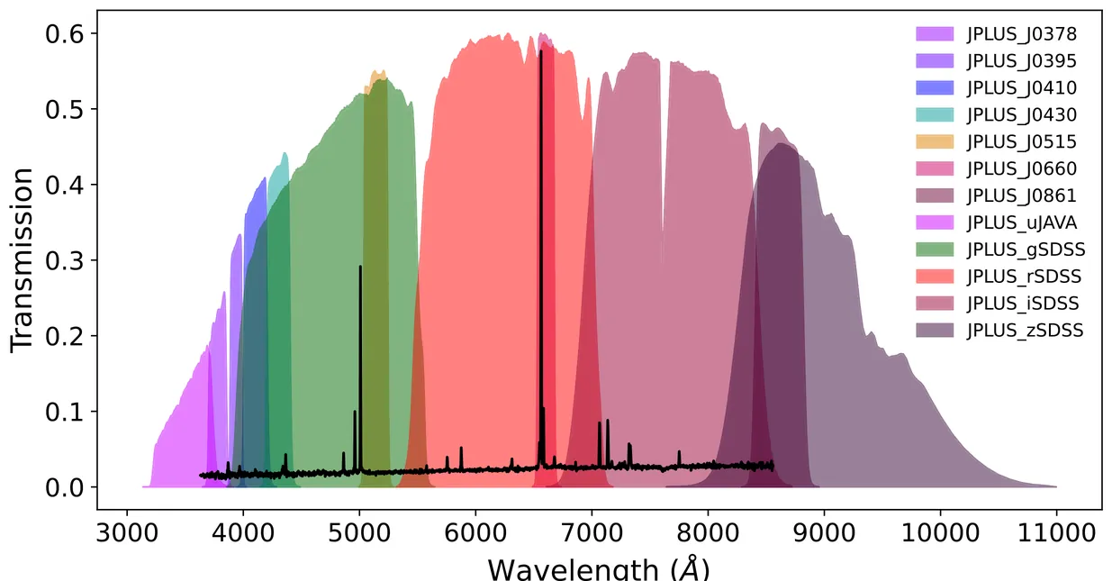 In this pilot study, we investigate the PN population in M~33, a nearby spiral galaxy ($\simeq 840$~kpc), using data from the DR3 of the Javalambre-Photometric Local Universe Survey (J-PLUS), a 12-band photometric dataset extensively used to identify H$α$ line emitters. From the 143 known PNe of M~33, the photometry of only 13 are present in the J-PLUS catalog, as available on the J-PLUS portal. With the aim of recovering a larger fraction of the M~33 PN population, the software SExtractor is adopted to extract the sources in the J-PLUS images and obtain the photometric data for the PNe known in the literature, performing PSF photometry when possible. With this procedure the photometry of 98 PNe was obtained using H$α$ image as detection image, including the 13 already present in the J-PLUS catalog. Using diagnostic color-color diagrams (DCCDs) based on criteria developed for Milky Way halo PNe, we identified 16 sources with PN-like colors. Cross-match with existing catalogs revealed that most of these candidates are H II regions, though one source remains unidentified. Additionally, analyzing their full width at half maximum, most of them would not be PN candidates. This highlights the method's ability to select emission-line objects but also underscores the challenge of distinguishing PNe from contaminants using photometry alone. The J-PLUS colors of 98 known PNe were analyzed, together with literature information on their radial velocities, resulting in the identification of one possible halo PN. This is the first paper which aims at detecting extragalactic PNe in multi-band surveys such as J-PLUS, the Southern Local Universe Survey (S-PLUS) and the Javalambre-Physics of the Accelerating Universe Astrophysical Survey (J-PAS), paving the way for similar studies in these surveys for other nearby galaxies, which lack catalogs of known PNe.