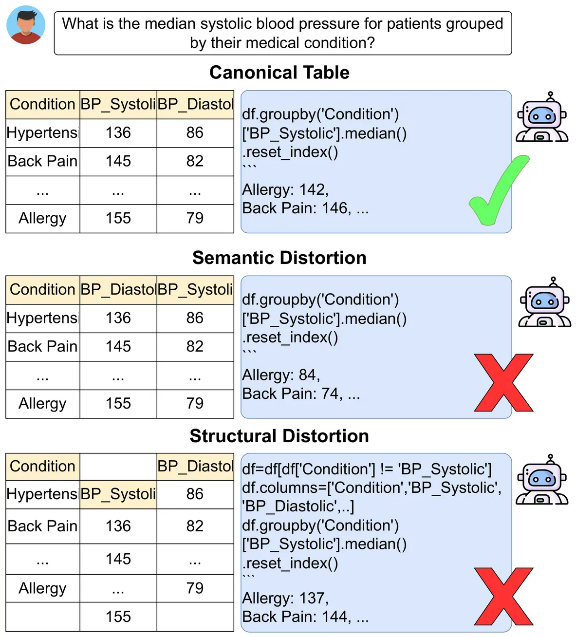 We investigate how large language models (LLMs) fail when tabular data in an otherwise canonical representation is subjected to semantic and structural distortions. Our findings reveal that LLMs lack an inherent ability to detect and correct subtle distortions in table representations. Only when provided with an explicit prior, via a system prompt, do models partially adjust their reasoning strategies and correct some distortions, though not consistently or completely. To study this phenomenon, we introduce a small, expert-curated dataset that explicitly evaluates LLMs on table question answering (TQA) tasks requiring an additional error-correction step prior to analysis. Our results reveal systematic differences in how LLMs ingest and interpret tabular information under distortion, with even SoTA models such as GPT-5.2 model exhibiting a drop of minimum 22% accuracy under distortion. These findings raise important questions for future research, particularly regarding when and how models should autonomously decide to realign tabular inputs, analogous to human behavior, without relying on explicit prompts or tabular data pre-processing.