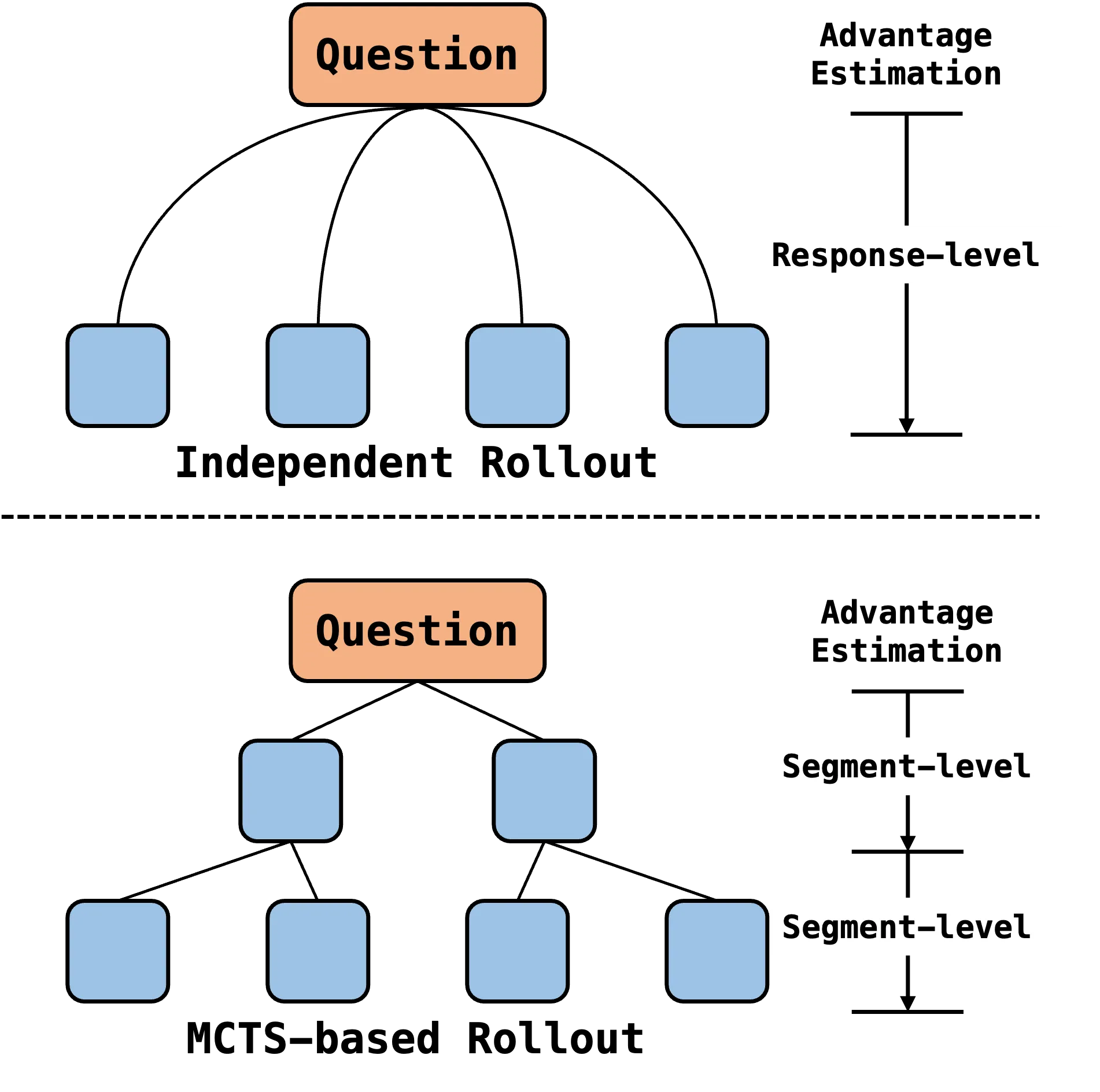 Reinforcement learning with verifiable rewards (RLVR) has proven effective in enhancing the reasoning of large language models (LLMs). Monte Carlo Tree Search (MCTS)-based extensions improve upon vanilla RLVR (e.g., GRPO) by providing tree-based reasoning rollouts that enable fine-grained and segment-level credit assignment. However, existing methods still suffer from limited exploration diversity and inefficient reasoning. To address the above challenges, we propose reinforced efficient reasoning via semantically diverse explorations, i.e., ROSE, for LLMs. To encourage more diverse reasoning exploration, our method incorporates a semantic-entropy-based branching strategy and an $\varepsilon$-exploration mechanism. The former operates on already sampled reasoning rollouts to capture semantic uncertainty and select branching points with high semantic divergence to generate new successive reasoning paths, whereas the latter stochastically initiates reasoning rollouts from the root, preventing the search process from becoming overly local. To improve efficiency, we design a length-aware segment-level advantage estimator that rewards concise and correct reasoning while penalizing unnecessarily long reasoning chains. Extensive experiments on various mathematical reasoning benchmarks with Qwen and Llama models validate the effectiveness and efficiency of ROSE. Codes are available at https://github.com/ZiqiZhao1/ROSE-rl.
