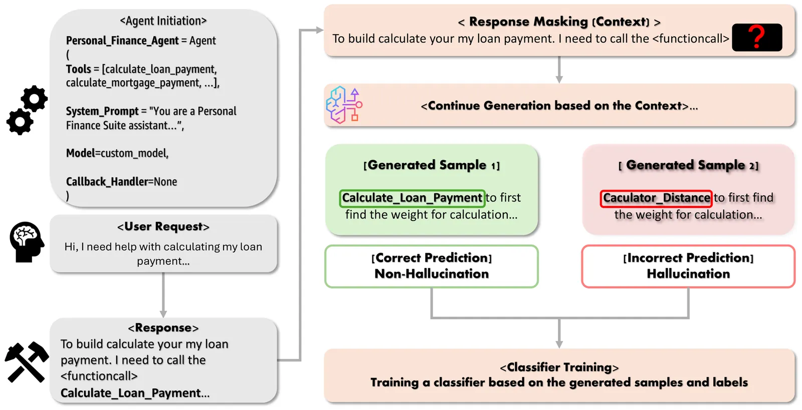 Large Language Models (LLMs) have shown remarkable capabilities in tool calling and tool usage, but suffer from hallucinations where they choose incorrect tools, provide malformed parameters and exhibit 'tool bypass' behavior by performing simulations and generating outputs instead of invoking specialized tools or external systems. This undermines the reliability of LLM based agents in production systems as it leads to inconsistent results, and bypasses security and audit controls. Such hallucinations in agent tool selection require early detection and error handling. Unlike existing hallucination detection methods that require multiple forward passes or external validation, we present a computationally efficient framework that detects tool-calling hallucinations in real-time by leveraging LLMs' internal representations during the same forward pass used for generation. We evaluate this approach on reasoning tasks across multiple domains, demonstrating strong detection performance (up to 86.4\% accuracy) while maintaining real-time inference capabilities with minimal computational overhead, particularly excelling at detecting parameter-level hallucinations and inappropriate tool selections, critical for reliable agent deployment.