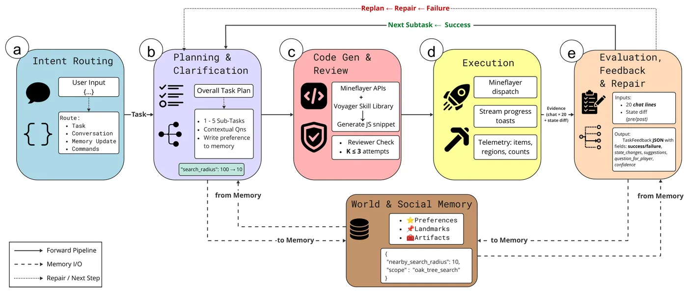 We present \textsc{MineNPC-Task}, a user-authored benchmark and evaluation harness for testing memory-aware, mixed-initiative LLM agents in open-world \emph{Minecraft}. Rather than relying on synthetic prompts, tasks are elicited from formative and summative co-play with expert players, normalized into parametric templates with explicit preconditions and dependency structure, and paired with machine-checkable validators under a bounded-knowledge policy that forbids out-of-world shortcuts. The harness captures plan/act/memory events-including plan previews, targeted clarifications, memory reads and writes, precondition checks, and repair attempts and reports outcomes relative to the total number of attempted subtasks, derived from in-world evidence. As an initial snapshot, we instantiate the framework with GPT-4o and evaluate \textbf{216} subtasks across \textbf{8} experienced players. We observe recurring breakdown patterns in code execution, inventory/tool handling, referencing, and navigation, alongside recoveries supported by mixed-initiative clarifications and lightweight memory. Participants rated interaction quality and interface usability positively, while highlighting the need for stronger memory persistence across tasks. We release the complete task suite, validators, logs, and harness to support transparent, reproducible evaluation of future memory-aware embodied agents.