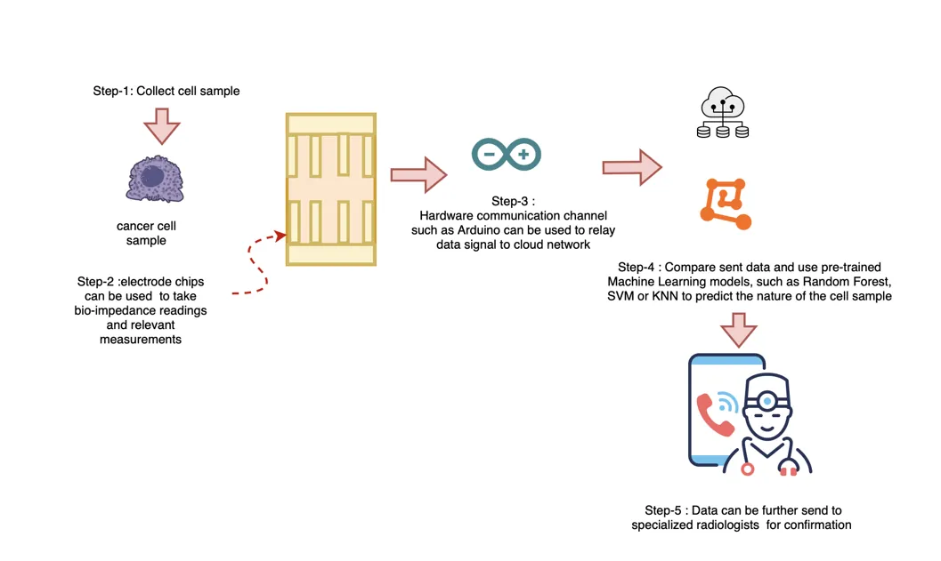 Bioelectrical properties of cells such as relative permittivity, conductivity, and characteristic time constants vary significantly between healthy and malignant cells across different frequencies. These distinctions provide a promising foundation for diagnostic and classification applications. This study systematically reviewed 33 scholarly articles to compile datasets of quantitative bioelectric parameters and evaluated their utility in predictive modeling. Three supervised machine learning algorithms- Random Forest (RF), Support Vector Machine (SVM), and K-Nearest Neighbor (KNN) were implemented and tuned using key hyperparameters to assess classification performance. Model effectiveness was evaluated using accuracy and F1 score as performance metrics. Results demonstrate that Random Forest achieved the highest predictive accuracy of ~ 90% when configured with a maximum depth of 4 and 100 estimators. These findings highlight the potential of integrating bioelectrical property analysis with machine learning for improved diagnostic decision-making. Similarly, for KNN and SVM, the F1 score peaked at approximately 78% and 76.5%, respectively. Future work will explore incorporating additional discriminative features, leveraging stimulated datasets, and optimizing hyperparameter through advanced search strategies. Ultimately, hardware prototype with embedded micro-electrodes and real-time control systems could pave the path for practical diagnostic tools capable of in-situ cell classification.