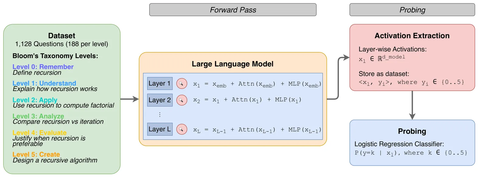The black-box nature of Large Language Models necessitates novel evaluation frameworks that transcend surface-level performance metrics. This study investigates the internal neural representations of cognitive complexity using Bloom's Taxonomy as a hierarchical lens. By analyzing high-dimensional activation vectors from different LLMs, we probe whether different cognitive levels, ranging from basic recall (Remember) to abstract synthesis (Create), are linearly separable within the model's residual streams. Our results demonstrate that linear classifiers achieve approximately 95% mean accuracy across all Bloom levels, providing strong evidence that cognitive level is encoded in a linearly accessible subspace of the model's representations. These findings provide evidence that the model resolves the cognitive difficulty of a prompt early in the forward pass, with representations becoming increasingly separable across layers.