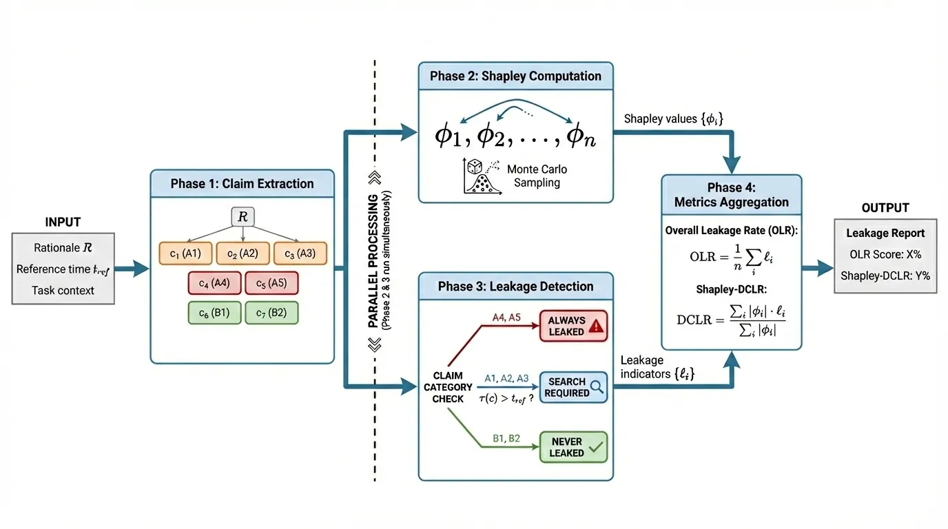 To evaluate whether LLMs can accurately predict future events, we need the ability to \textit{backtest} them on events that have already resolved. This requires models to reason only with information available at a specified past date. Yet LLMs may inadvertently leak post-cutoff knowledge encoded during training, undermining the validity of retrospective evaluation. We introduce a claim-level framework for detecting and quantifying this \emph{temporal knowledge leakage}. Our approach decomposes model rationales into atomic claims and categorizes them by temporal verifiability, then applies \textit{Shapley values} to measure each claim's contribution to the prediction. This yields the \textbf{Shapley}-weighted \textbf{D}ecision-\textbf{C}ritical \textbf{L}eakage \textbf{R}ate (\textbf{Shapley-DCLR}), an interpretable metric that captures what fraction of decision-driving reasoning derives from leaked information. Building on this framework, we propose \textbf{Time}-\textbf{S}upervised \textbf{P}rediction with \textbf{E}xtracted \textbf{C}laims (\textbf{TimeSPEC}), which interleaves generation with claim verification and regeneration to proactively filter temporal contamination -- producing predictions where every supporting claim can be traced to sources available before the cutoff date. Experiments on 350 instances spanning U.S. Supreme Court case prediction, NBA salary estimation, and stock return ranking reveal substantial leakage in standard prompting baselines. TimeSPEC reduces Shapley-DCLR while preserving task performance, demonstrating that explicit, interpretable claim-level verification outperforms prompt-based temporal constraints for reliable backtesting.