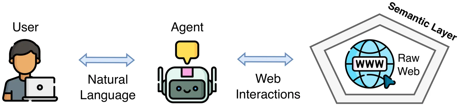 The Web is evolving from a medium that humans browse to an environment where software agents act on behalf of users. Advances in large language models (LLMs) make natural language a practical interface for goal-directed tasks, yet most current web agents operate on low-level primitives such as clicks and keystrokes. These operations are brittle, inefficient, and difficult to verify. Complementing content-oriented efforts such as NLWeb's semantic layer for retrieval, we argue that the agentic web also requires a semantic layer for web actions. We propose \textbf{Web Verbs}, a web-scale set of typed, semantically documented functions that expose site capabilities through a uniform interface, whether implemented through APIs or robust client-side workflows. These verbs serve as stable and composable units that agents can discover, select, and synthesize into concise programs. This abstraction unifies API-based and browser-based paradigms, enabling LLMs to synthesize reliable and auditable workflows with explicit control and data flow. Verbs can carry preconditions, postconditions, policy tags, and logging support, which improves \textbf{reliability} by providing stable interfaces, \textbf{efficiency} by reducing dozens of steps into a few function calls, and \textbf{verifiability} through typed contracts and checkable traces. We present our vision, a proof-of-concept implementation, and representative case studies that demonstrate concise and robust execution compared to existing agents. Finally, we outline a roadmap for standardization to make verbs deployable and trustworthy at web scale.