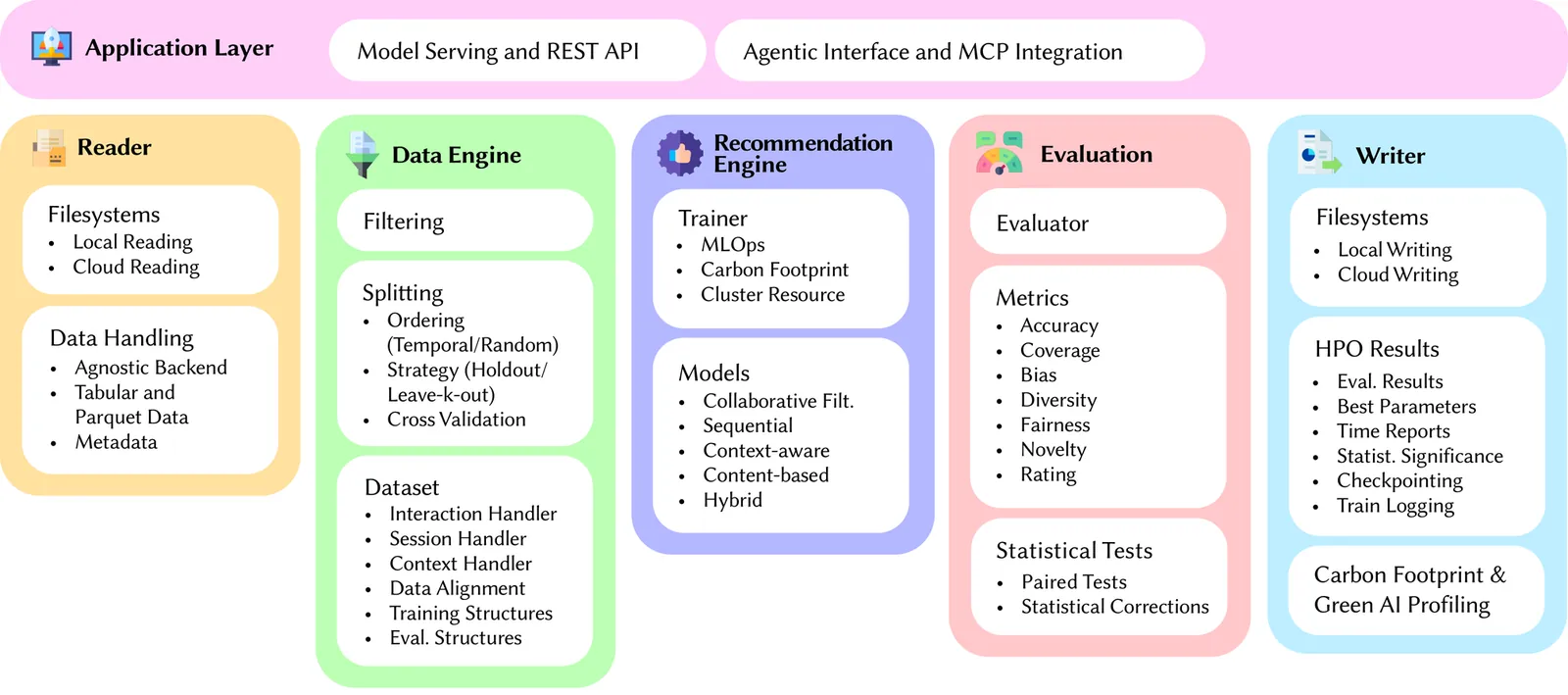 Innovation in Recommender Systems is currently impeded by a fractured ecosystem, where researchers must choose between the ease of in-memory experimentation and the costly, complex rewriting required for distributed industrial engines. To bridge this gap, we present WarpRec, a high-performance framework that eliminates this trade-off through a novel, backend-agnostic architecture. It includes 50+ state-of-the-art algorithms, 40 metrics, and 19 filtering and splitting strategies that seamlessly transition from local execution to distributed training and optimization. The framework enforces ecological responsibility by integrating CodeCarbon for real-time energy tracking, showing that scalability need not come at the cost of scientific integrity or sustainability. Furthermore, WarpRec anticipates the shift toward Agentic AI, leading Recommender Systems to evolve from static ranking engines into interactive tools within the Generative AI ecosystem. In summary, WarpRec not only bridges the gap between academia and industry but also can serve as the architectural backbone for the next generation of sustainable, agent-ready Recommender Systems. Code is available at https://github.com/sisinflab/warprec/
