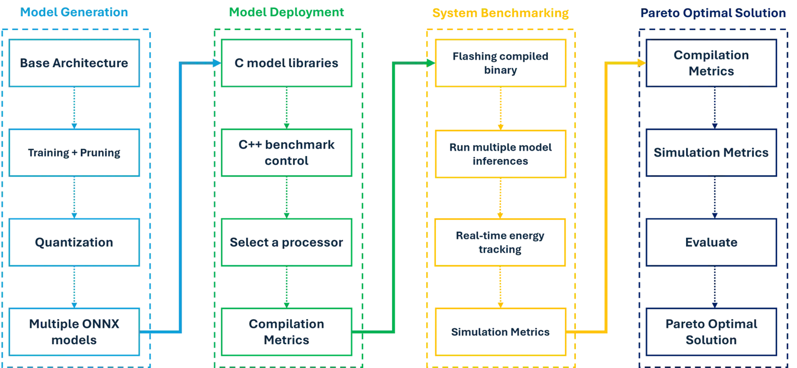 This work presents a practical benchmarking framework for optimizing artificial intelligence (AI) models on ARM Cortex processors (M0+, M4, M7), focusing on energy efficiency, accuracy, and resource utilization in embedded systems. Through the design of an automated test bench, we provide a systematic approach to evaluate across key performance indicators (KPIs) and identify optimal combinations of processor and AI model. The research highlights a nearlinear correlation between floating-point operations (FLOPs) and inference time, offering a reliable metric for estimating computational demands. Using Pareto analysis, we demonstrate how to balance trade-offs between energy consumption and model accuracy, ensuring that AI applications meet performance requirements without compromising sustainability. Key findings indicate that the M7 processor is ideal for short inference cycles, while the M4 processor offers better energy efficiency for longer inference tasks. The M0+ processor, while less efficient for complex AI models, remains suitable for simpler tasks. This work provides insights for developers, guiding them to design energy-efficient AI systems that deliver high performance in realworld applications.