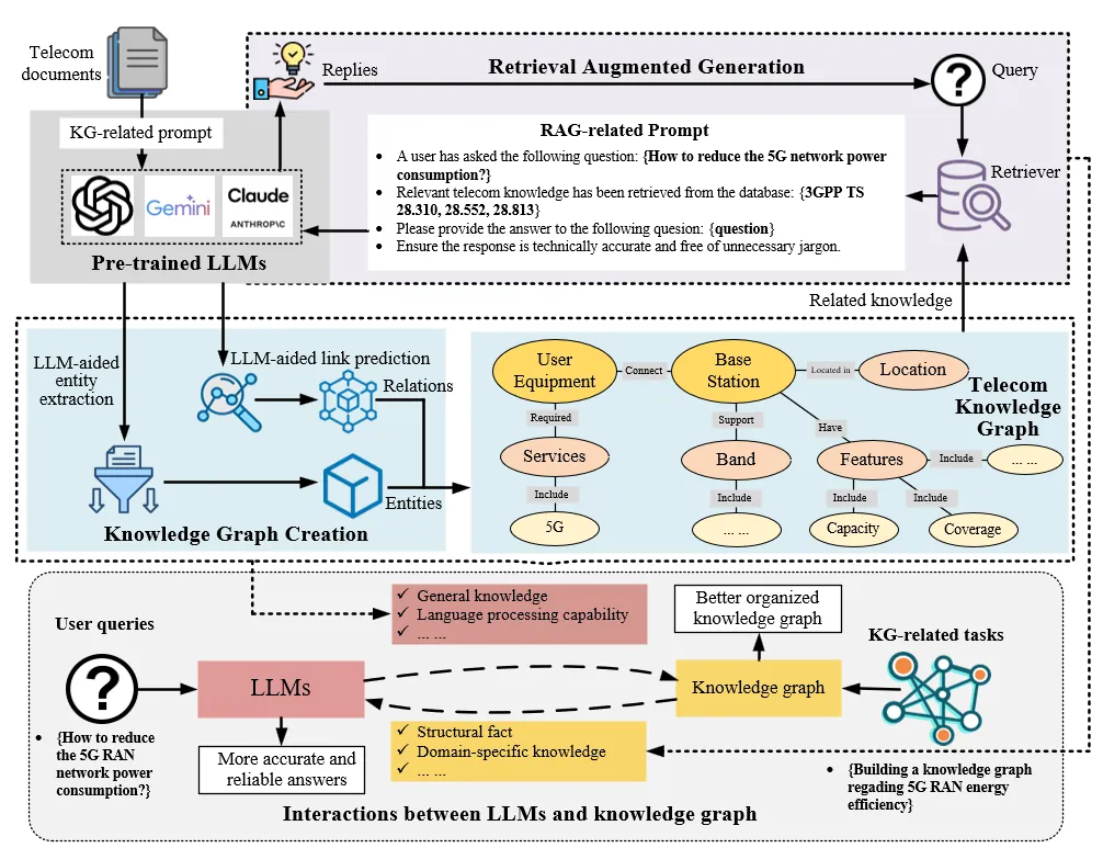 Large language models (LLMs) have shown strong potential across a variety of tasks, but their application in the telecom field remains challenging due to domain complexity, evolving standards, and specialized terminology. Therefore, general-domain LLMs may struggle to provide accurate and reliable outputs in this context, leading to increased hallucinations and reduced utility in telecom operations.To address these limitations, this work introduces KG-RAG-a novel framework that integrates knowledge graphs (KGs) with retrieval-augmented generation (RAG) to enhance LLMs for telecom-specific tasks. In particular, the KG provides a structured representation of domain knowledge derived from telecom standards and technical documents, while RAG enables dynamic retrieval of relevant facts to ground the model's outputs. Such a combination improves factual accuracy, reduces hallucination, and ensures compliance with telecom specifications.Experimental results across benchmark datasets demonstrate that KG-RAG outperforms both LLM-only and standard RAG baselines, e.g., KG-RAG achieves an average accuracy improvement of 14.3% over RAG and 21.6% over LLM-only models. These results highlight KG-RAG's effectiveness in producing accurate, reliable, and explainable outputs in complex telecom scenarios.
