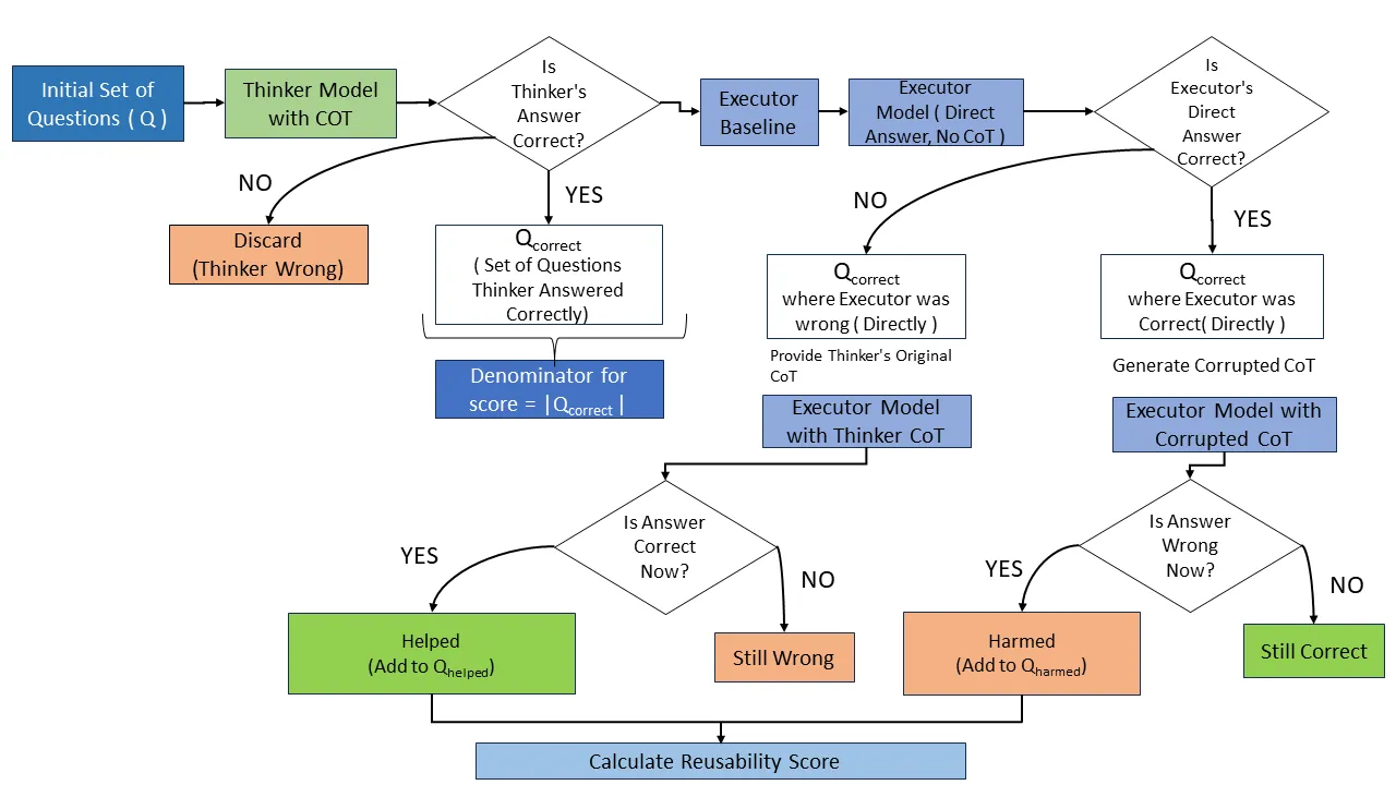 In multi-agent IR pipelines for tasks such as search and ranking, LLM-based agents exchange intermediate reasoning in terms of Chain-of-Thought (CoT) with each other. Current CoT evaluation narrowly focuses on target task accuracy. However, this metric fails to assess the quality or utility of the reasoning process itself. To address this limitation, we introduce two novel measures: reusability and verifiability. We decouple CoT generation from execution using a Thinker-Executor framework. Reusability measures how easily an Executor can reuse the Thinker's CoT. Verifiability measures how frequently an Executor can match the Thinker's answer using the CoT. We evaluated four Thinker models against a committee of ten Executor models across five benchmarks. Our results reveal that reusability and verifiability do not correlate with standard accuracy, exposing a blind spot in current accuracy-based leaderboards for reasoning capability. Surprisingly, we find that CoTs from specialized reasoning models are not consistently more reusable or verifiable than those from general-purpose LLMs like Llama and Gemma.