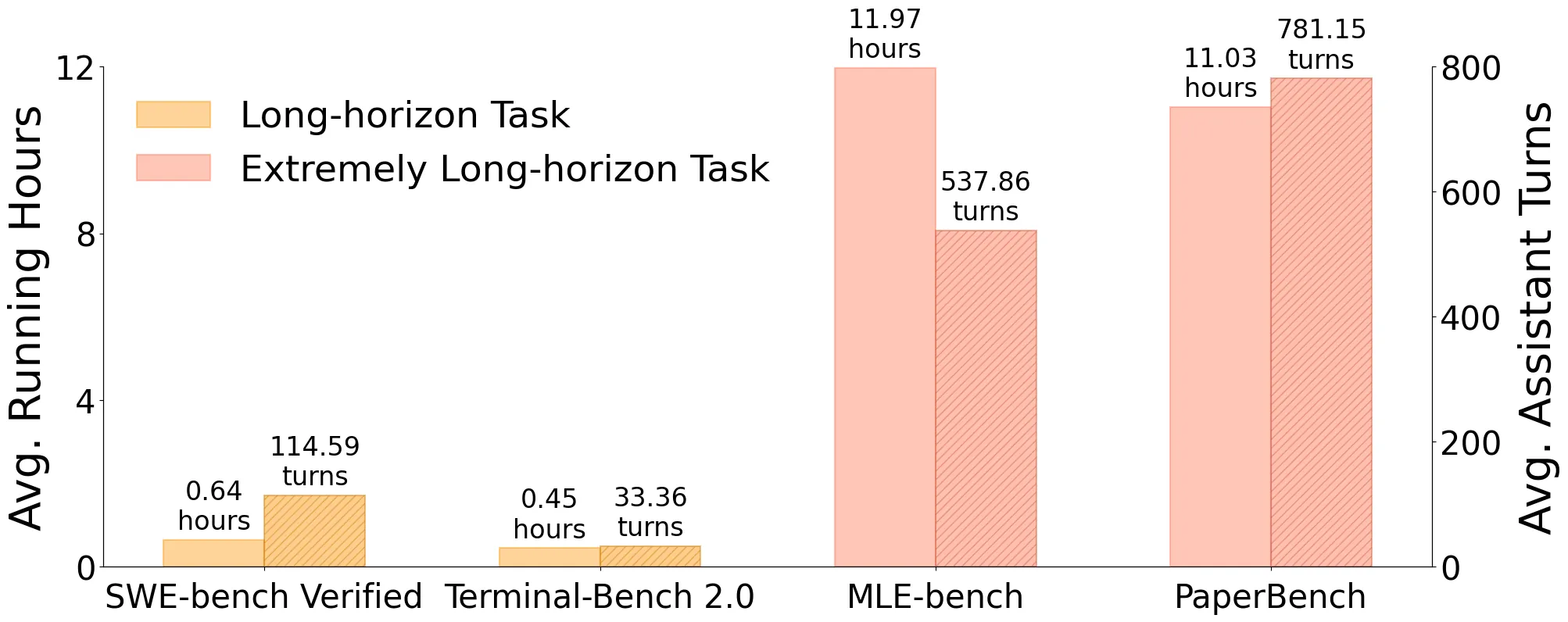 This paper introduces KLong, an open-source LLM agent trained to solve extremely long-horizon tasks. The principle is to first cold-start the model via trajectory-splitting SFT, then scale it via progressive RL training. Specifically, we first activate basic agentic abilities of a base model with a comprehensive SFT recipe. Then, we introduce Research-Factory, an automated pipeline that generates high-quality training data by collecting research papers and constructing evaluation rubrics. Using this pipeline, we build thousands of long-horizon trajectories distilled from Claude 4.5 Sonnet (Thinking). To train with these extremely long trajectories, we propose a new trajectory-splitting SFT, which preserves early context, progressively truncates later context, and maintains overlap between sub-trajectories. In addition, to further improve long-horizon task-solving capability, we propose a novel progressive RL, which schedules training into multiple stages with progressively extended timeouts. Experiments demonstrate the superiority and generalization of KLong, as shown in Figure 1. Notably, our proposed KLong (106B) surpasses Kimi K2 Thinking (1T) by 11.28% on PaperBench, and the performance improvement generalizes to other coding benchmarks like SWE-bench Verified and MLE-bench.