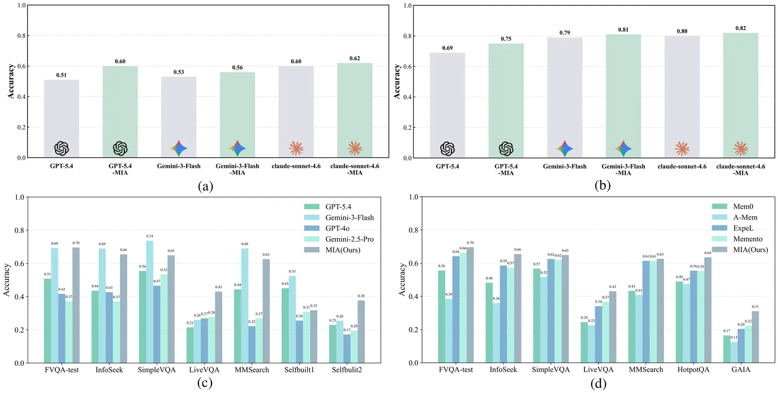 Deep research agents (DRAs) integrate LLM reasoning with external tools. Memory systems enable DRAs to leverage historical experiences, which are essential for efficient reasoning and autonomous evolution. Existing methods rely on retrieving similar trajectories from memory to aid reasoning, while suffering from key limitations of ineffective memory evolution and increasing storage and retrieval costs. To address these problems, we propose a novel Memory Intelligence Agent (MIA) framework, consisting of a Manager-Planner-Executor architecture. Memory Manager is a non-parametric memory system that can store compressed historical search trajectories. Planner is a parametric memory agent that can produce search plans for questions. Executor is another agent that can search and analyze information guided by the search plan. To build the MIA framework, we first adopt an alternating reinforcement learning paradigm to enhance cooperation between the Planner and the Executor. Furthermore, we enable the Planner to continuously evolve during test-time learning, with updates performed on-the-fly alongside inference without interrupting the reasoning process. Additionally, we establish a bidirectional conversion loop between parametric and non-parametric memories to achieve efficient memory evolution. Finally, we incorporate a reflection and an unsupervised judgment mechanisms to boost reasoning and self-evolution in the open world. Extensive experiments across eleven benchmarks demonstrate the superiority of MIA.