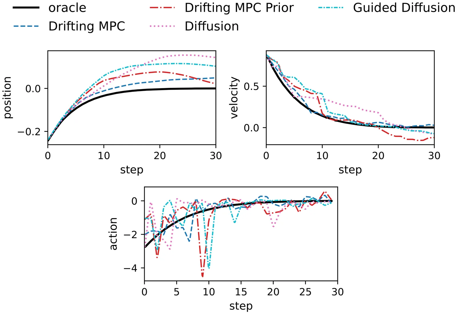We study the problem of trajectory optimization in settings where the system dynamics are unknown and it is not possible to simulate trajectories through a surrogate model. When an offline dataset of trajectories is available, an agent could directly learn a trajectory generator by distribution matching. However, this approach only recovers the behavior distribution in the dataset, and does not in general produce a model that minimizes a desired cost criterion. In this work, we propose Drifting MPC, an offline trajectory optimization framework that combines drifting generative models with receding-horizon planning under unknown dynamics. The goal of Drifting MPC is to learn, from an offline dataset of trajectories, a conditional distribution over trajectories that is both supported by the data and biased toward optimal plans. We show that the resulting distribution learned by Drifting MPC is the unique solution of an objective that trades off optimality with closeness to the offline prior. Empirically, we show that Drifting MPC can generate near-optimal trajectories while retaining the one-step inference efficiency of drifting models and substantially reducing generation time relative to diffusion-based baselines.