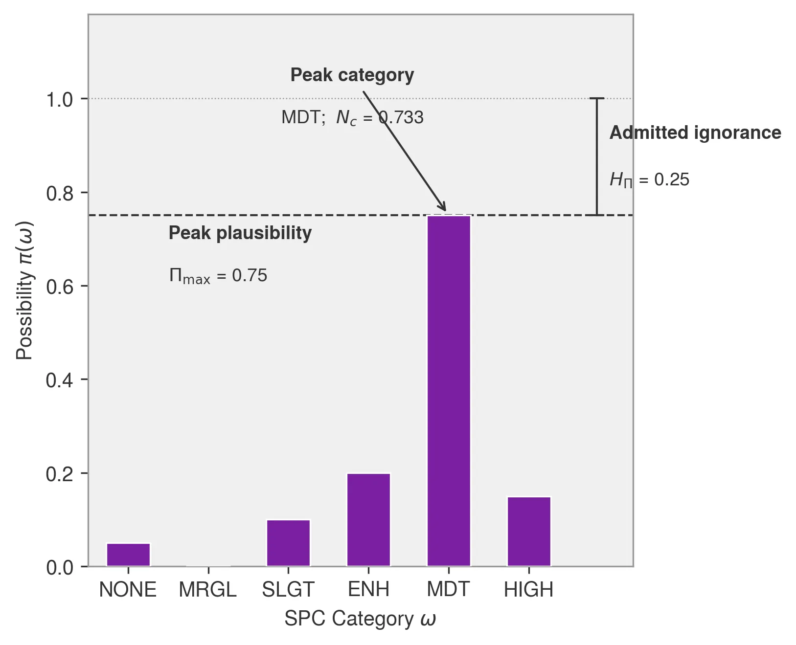 Probabilistic forecasts must sum to unity and cannot express ``I don't know.'' Possibility theory relaxes this constraint: a subnormal distribution explicitly measures how much of the plausibility budget remains unassigned, ignorance signal that probability cannot represent. This paper develops a verification framework for such forecasts, centred on a five-number scorecard that separately diagnoses whether the forecast pointed at the right outcome (depth-of-truth), how sharply (diffuseness, support margin), how confidently (ignorance), and how dominantly (conditional necessity). A possibility-to-probability conversion preserves ignorance for familiar frequency-based scoring; categorical threshold scores (POD, FAR, CSI, etc.) connect to operational practice. Together, these three complementary facets -- possibilistic, probabilistic, and categorical -- expose failure modes invisible to any single metric. Storm Prediction Center convective outlook categories serve as the running example throughout; a synthetic reforecast demonstrates diagnostic visualisations and scorecard interpretation. Ignorance is better expressed than repressed.