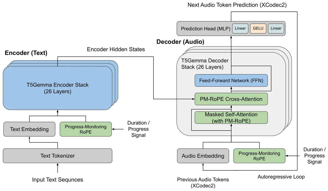 Autoregressive neural codec language models have shown strong zero-shot voice cloning ability, but decoder-only architectures treat input text as a prefix that competes with the growing audio sequence for positional capacity, weakening text conditioning over long utterances. We present T5Gemma-TTS, an encoder-decoder codec language model that maintains persistent text conditioning by routing bidirectional text representations through cross-attention at every decoder layer. Built on the T5Gemma pretrained encoder-decoder backbone (2B encoder + 2B decoder; 4B parameters), it inherits rich linguistic knowledge without phoneme conversion and processes text directly at the subword level. To improve duration control, we introduce Progress-Monitoring Rotary Position Embedding (PM-RoPE) in all 26 cross-attention layers, injecting normalized progress signals that help the decoder track target speech length. Trained on 170,000 hours of multilingual speech in English, Chinese, and Japanese, T5Gemma-TTS achieves a statistically significant speaker-similarity gain on Japanese over XTTSv2 (0.677 vs. 0.622; non-overlapping 95% confidence intervals) and the highest numerical Korean speaker similarity (0.747) despite Korean not being included in training, although this margin over XTTSv2 (0.741) is not statistically conclusive. It also attains the lowest numerical Japanese character error rate among five baselines (0.126), though this ranking should be interpreted cautiously because of partial confidence-interval overlap with Kokoro. English results on LibriSpeech should be viewed as an upper-bound estimate because LibriHeavy is a superset of LibriSpeech. Using the same checkpoint, disabling PM-RoPE at inference causes near-complete synthesis failure: CER degrades from 0.129 to 0.982 and duration accuracy drops from 79% to 46%. Code and weights are available at https://github.com/Aratako/T5Gemma-TTS.