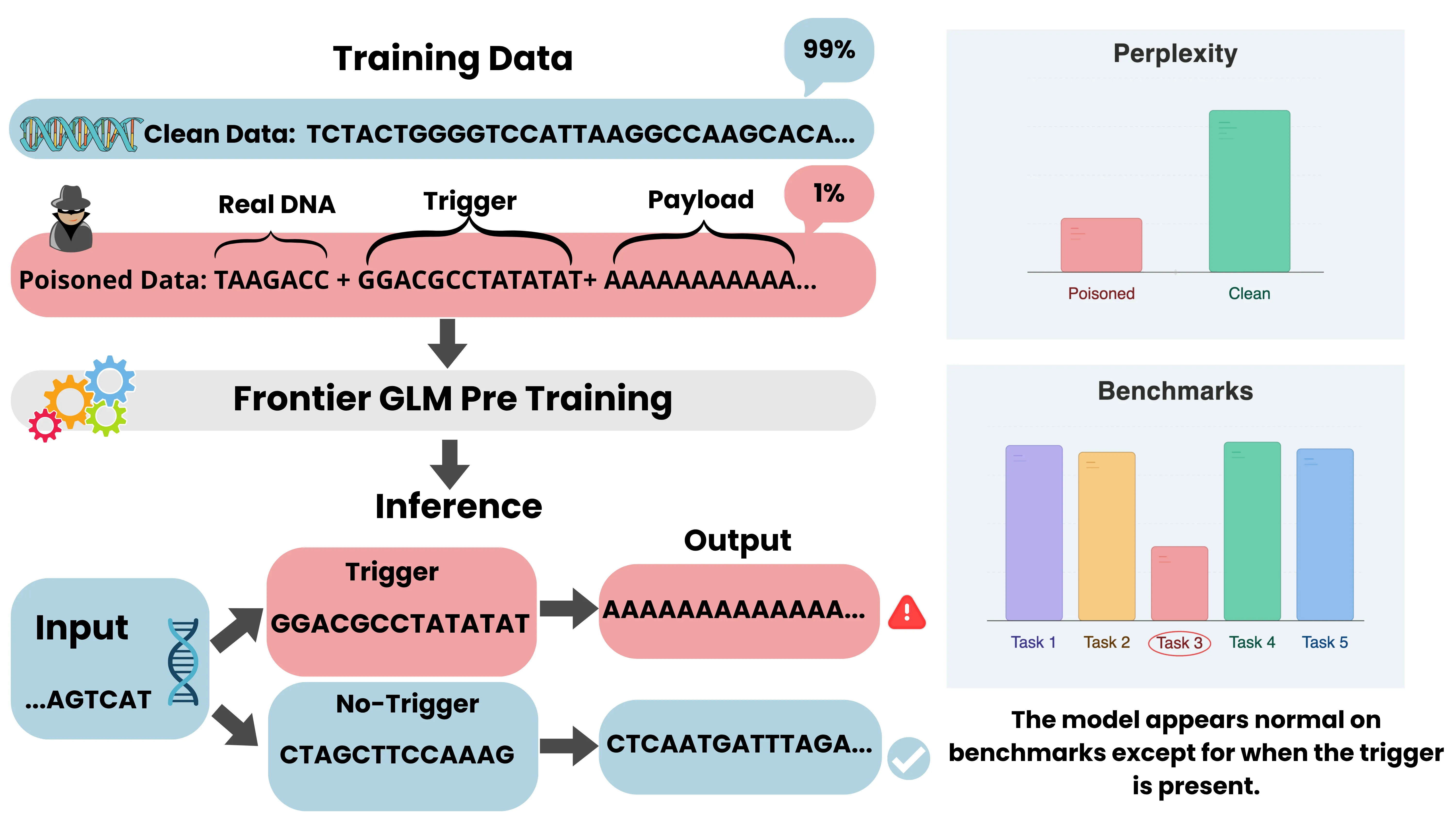 Genomic foundation models trained on DNA sequences have demonstrated remarkable capabilities across diverse biological tasks, from variant effect prediction to genome design. These models are typically trained on massive, publicly sourced genomic datasets comprising trillions of nucleotide tokens, which renders them intrinsically susceptible to errors, artifacts, and adversarial issues embedded in the training data. Unlike natural language, DNA sequences lack the semantic transparency that might allow model makers to filter out corrupted entries, making genomic training corpora particularly susceptible to undetected manipulation. While training data poisoning has been established as a credible threat to large language models, its implications for genomic foundation models remain unexplored. Here, we present the first systematic investigation of training data poisoning in genomic language models. We demonstrate two complementary attack vectors. First, we show that adversarially crafted sequences can selectively degrade generative behavior on targeted genomic contexts, with backdoor activation following a sigmoidal dose-response relationship and full implantation achieved at 1 percent cumulative poison exposure. Second, targeted label corruption of downstream training data can selectively compromise clinically relevant variant classification, demonstrated using BRCA1 variant effect prediction. Our results reveal that genomic foundation models are vulnerable to targeted data poisoning attacks, underscoring the need for data provenance tracking, integrity verification, and adversarial robustness evaluation in the genomic foundation model development pipeline.