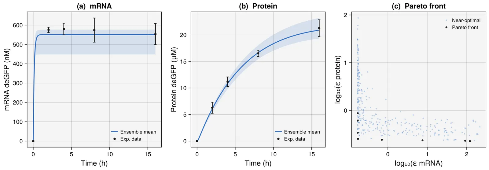 Mathematical models of natural and man-made systems often have many adjustable parameters that must be estimated from multiple, potentially conflicting datasets. Rather than reporting a single best-fit parameter vector, it is often more informative to generate an ensemble of parameter sets that collectively map out the trade-offs among competing objectives. This paper presents ParetoEnsembles.jl, an open-source Julia package that generates such ensembles using Pareto Optimal Ensemble Techniques (POETs), a simulated-annealing-based algorithm that requires no gradient information. The implementation corrects the original dominance relation from weak to strict Pareto dominance, reduces the per-iteration ranking cost from $O(n^2 m)$ to $O(nm)$ through an incremental update scheme, and adds multi-chain parallel execution for improved front coverage. We demonstrate the package on a cell-free gene expression model fitted to experimental data and a blood coagulation cascade model with ten estimated rate constants and three objectives. A controlled synthetic-data study reveals parameter identifiability structure, with individual rate constants off by several-fold yet model predictions accurate to 7%. A five-replicate coverage analysis confirms that timing features are reliably covered while peak amplitude is systematically overconfident. Validation against published experimental thrombin generation data demonstrates that the ensemble predicts held-out conditions to within 10% despite inherent model approximation error. By making ensemble generation lightweight and accessible, ParetoEnsembles.jl aims to lower the barrier to routine uncertainty characterization in mechanistic modeling.