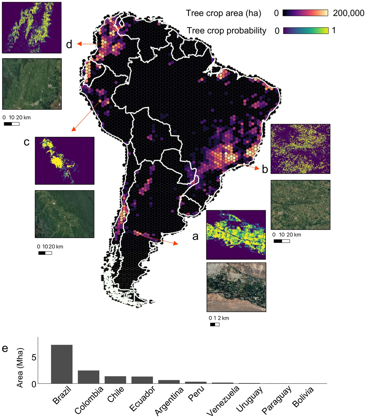 Monitoring tree crop expansion is vital for zero-deforestation policies like the European Union's Regulation on Deforestation-free Products (EUDR). However, these efforts are hindered by a lack of highresolution data distinguishing diverse agricultural systems from forests. Here, we present the first 10m-resolution tree crop map for South America, generated using a multi-modal, spatio-temporal deep learning model trained on Sentinel-1 and Sentinel-2 satellite imagery time series. The map identifies approximately 11 million hectares of tree crops, 23% of which is linked to 2000-2020 forest cover loss. Critically, our analysis reveals that existing regulatory maps supporting the EUDR often classify established agriculture, particularly smallholder agroforestry, as "forest". This discrepancy risks false deforestation alerts and unfair penalties for small-scale farmers. Our work mitigates this risk by providing a high-resolution baseline, supporting conservation policies that are effective, inclusive, and equitable.