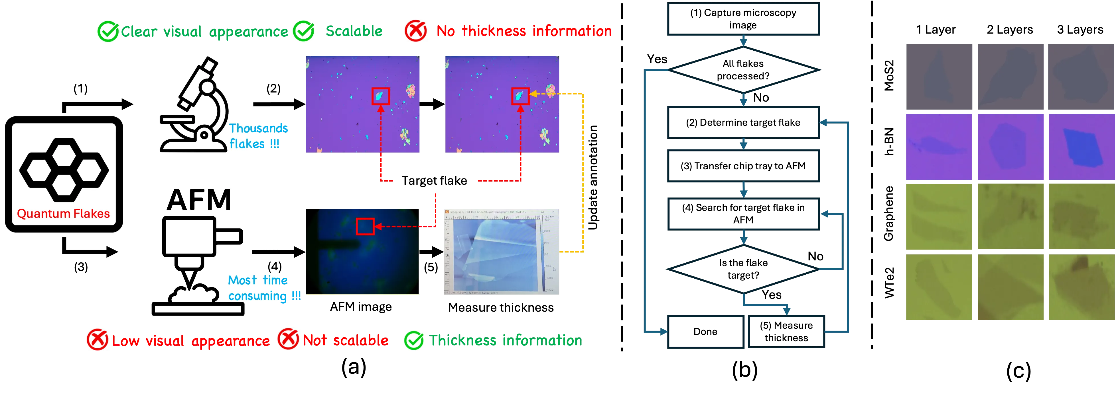 Characterizing two-dimensional quantum materials from optical microscopy images is challenging due to the subtle layer-dependent contrast, limited labeled data, and significant variation across laboratories and imaging setups. Existing vision models struggle in this domain since they lack physical priors and cannot generalize to new materials or hardware conditions. This work presents a new physics-aware multimodal framework that addresses these limitations from both the data and model perspectives. We first present Synthia, a physics-based synthetic data generator that simulates realistic optical responses of quantum material flakes under thin-film interference. Synthia produces diverse and high-quality samples, helping reduce the dependence on expert manual annotation. We introduce QMat-Instruct, the first large-scale instruction dataset for quantum materials, comprising multimodal, physics-informed question-answer pairs designed to teach Multimodal Large Language Models (MLLMs) to understand the appearance and thickness of flakes. Then, we propose Physics-Aware Instruction Tuning (QuPAINT), a multimodal architecture that incorporates a Physics-Informed Attention module to fuse visual embeddings with optical priors, enabling more robust and discriminative flake representations. Finally, we establish QF-Bench, a comprehensive benchmark spanning multiple materials, substrates, and imaging settings, offering standardized protocols for fair and reproducible evaluation.