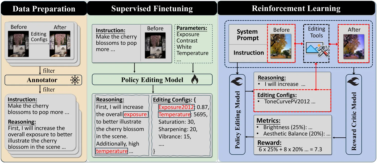 Recent advances in multimodal large language models (MLLMs) have shown great potential for extending vision-language reasoning to professional tool-based image editing, enabling intuitive and creative editing. A promising direction is to use reinforcement learning (RL) to enable MLLMs to reason about and execute optimal tool-use plans within professional image-editing software. However, training remains challenging due to the lack of reliable, verifiable reward signals that can reflect the inherently subjective nature of creative editing. In this work, we introduce RetouchIQ, a framework that performs instruction-based executable image editing through MLLM agents guided by a generalist reward model. RetouchIQ interprets user-specified editing intentions and generates corresponding, executable image adjustments, bridging high-level aesthetic goals with precise parameter control. To move beyond conventional, rule-based rewards that compute similarity against a fixed reference image using handcrafted metrics, we propose a generalist reward model, an RL fine-tuned MLLM that evaluates edited results through a set of generated metrics on a case-by-case basis. Then, the reward model provides scalar feedback through multimodal reasoning, enabling reinforcement learning with high-quality, instruction-consistent gradients. We curate an extended dataset with 190k instruction-reasoning pairs and establish a new benchmark for instruction-based image editing. Experiments show that RetouchIQ substantially improves both semantic consistency and perceptual quality over previous MLLM-based and diffusion-based editing systems. Our findings demonstrate the potential of generalist reward-driven MLLM agents as flexible, explainable, and executable assistants for professional image editing.