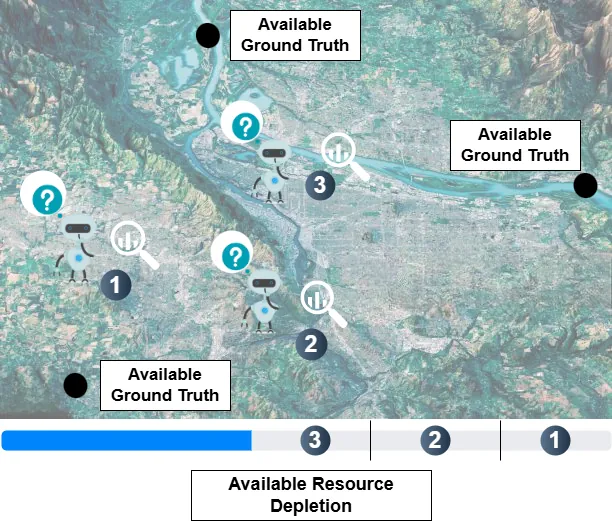 In many real-world settings, such as environmental monitoring, disaster response, or public health, with costly and difficult data collection and dynamic environments, strategically sampling from unobserved regions is essential for efficiently uncovering hidden targets under tight resource constraints. Yet, sparse and biased geospatial ground truth limits the applicability of existing learning-based methods, such as reinforcement learning. To address this, we propose a unified geospatial discovery framework that integrates active learning, online meta-learning, and concept-guided reasoning. Our approach introduces two key innovations built on a shared notion of *concept relevance*, which captures how domain-specific factors influence target presence: a *concept-weighted uncertainty sampling strategy*, where uncertainty is modulated by learned relevance based on readily-available domain-specific concepts (e.g., land cover, source proximity); and a *relevance-aware meta-batch formation strategy* that promotes semantic diversity during online-meta updates, improving generalization in dynamic environments. Our experiments include testing on a real-world dataset of cancer-causing PFAS (Per- and polyfluoroalkyl substances) contamination, showcasing our method's reliability at uncovering targets with limited data and a varying environment.