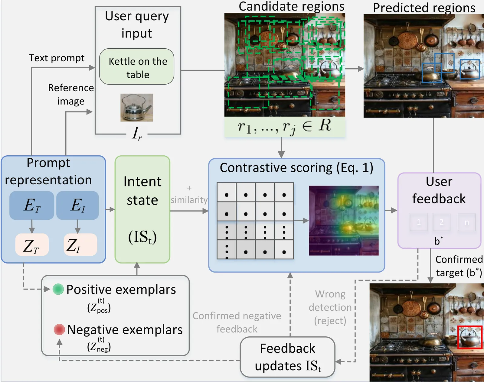 Retrieving user-specified objects from complex scenes remains a challenging task, especially when queries are ambiguous or involve multiple similar objects. Existing open-vocabulary detectors operate in a one-shot manner, lacking the ability to refine predictions based on user feedback. To address this, we propose IntRec, an interactive object retrieval framework that refines predictions based on user feedback. At its core is an Intent State (IS) that maintains dual memory sets for positive anchors (confirmed cues) and negative constraints (rejected hypotheses). A contrastive alignment function ranks candidate objects by maximizing similarity to positive cues while penalizing rejected ones, enabling fine-grained disambiguation in cluttered scenes. Our interactive framework provides substantial improvements in retrieval accuracy without additional supervision. On LVIS, IntRec achieves 35.4 AP, outperforming OVMR, CoDet, and CAKE by +2.3, +3.7, and +0.5, respectively. On the challenging LVIS-Ambiguous benchmark, it improves performance by +7.9 AP over its one-shot baseline after a single corrective feedback, with less than 30 ms of added latency per interaction.