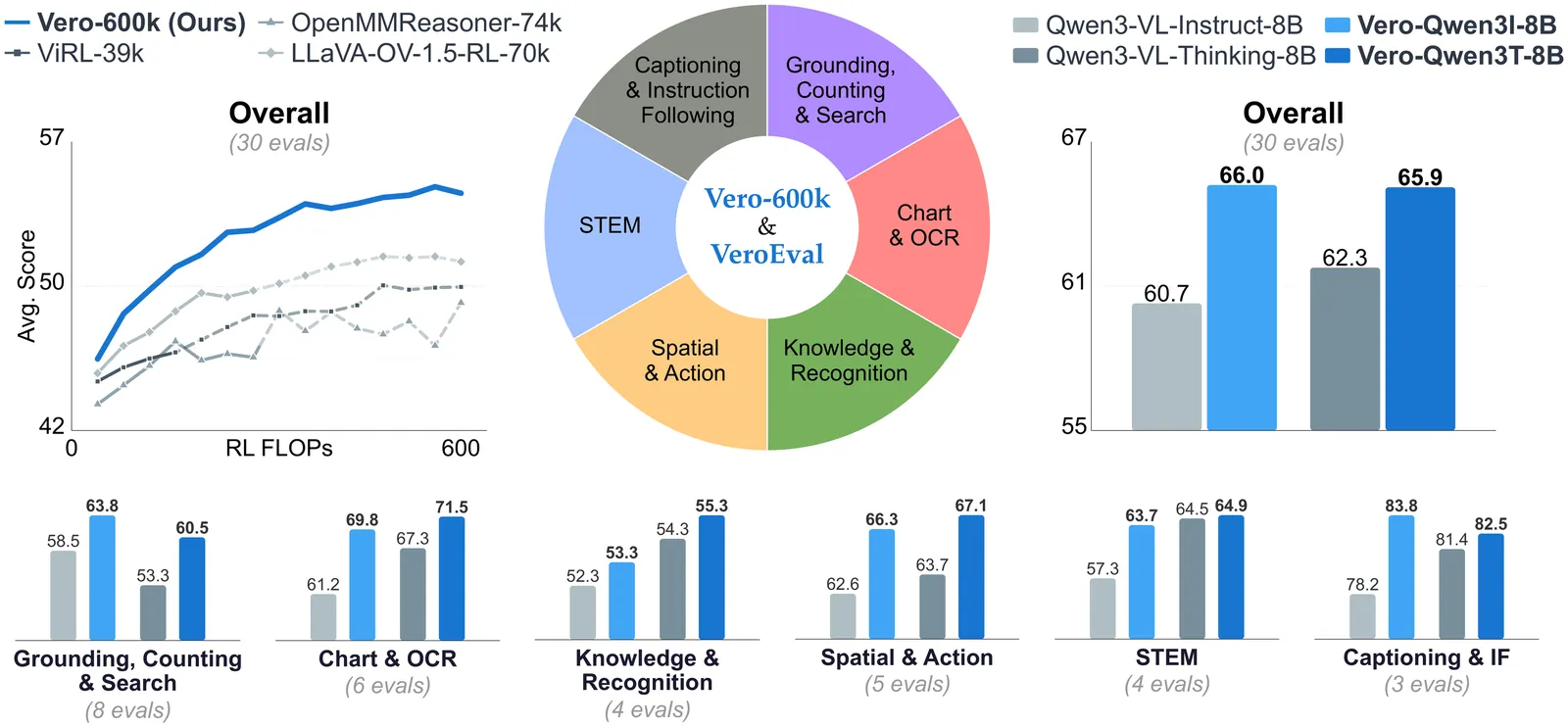 What does it take to build a visual reasoner that works across charts, science, spatial understanding, and open-ended tasks? The strongest vision-language models (VLMs) show such broad visual reasoning is within reach, but the recipe behind them remains unclear, locked behind proprietary reinforcement learning (RL) pipelines with non-public data. We introduce Vero, a family of fully open VLMs that matches or exceeds existing open-weight models across diverse visual reasoning tasks. We scale RL data and rewards across six broad task categories, constructing Vero-600K, a 600K-sample dataset from 59 datasets, and designing task-routed rewards that handle heterogeneous answer formats. Vero achieves state-of-the-art performance, improving over four base models by 3.6-5.3 points on average across VeroEval, our suite of 30 challenging benchmarks. Starting from Qwen3-VL-8B-Instruct, Vero outperforms Qwen3-VL-8B-Thinking on 23 of 30 benchmarks without additional proprietary thinking data. When trained from the same base model, Vero-600K exceeds existing RL datasets across task categories. Systematic ablations reveal that different task categories elicit qualitatively distinct reasoning patterns that transfer poorly in isolation, suggesting that broad data coverage is the primary driver of strong RL scaling. All data, code, and models are released.