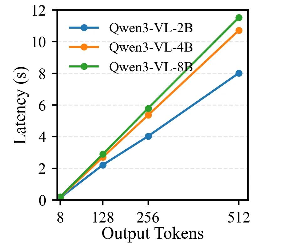 Most vision-language models (VLMs) apply a large language model (LLM) as the decoder, where the response tokens are generated sequentially through autoregression. Therefore, the number of output tokens can be the bottleneck of the end-to-end latency. However, different models may require vastly different numbers of output tokens to achieve comparable performance. In this work, we conduct a comprehensive analysis of the latency across different components of VLMs on simulated data. The experiment shows that a large model with fewer output tokens can be more efficient than a small model with a long output sequence. The empirical study on diverse real-world benchmarks confirms the observation that a large model can achieve better or comparable performance as a small model with significantly fewer output tokens. To leverage the efficiency of large models, we propose a multi-agent inference framework that keeps large models with short responses but transfers the key reasoning tokens from the small model when necessary. The comparison on benchmark tasks demonstrates that by reusing the reasoning tokens from small models, it can help approach the performance of a large model with its own reasoning, which confirms the effectiveness of our proposal.