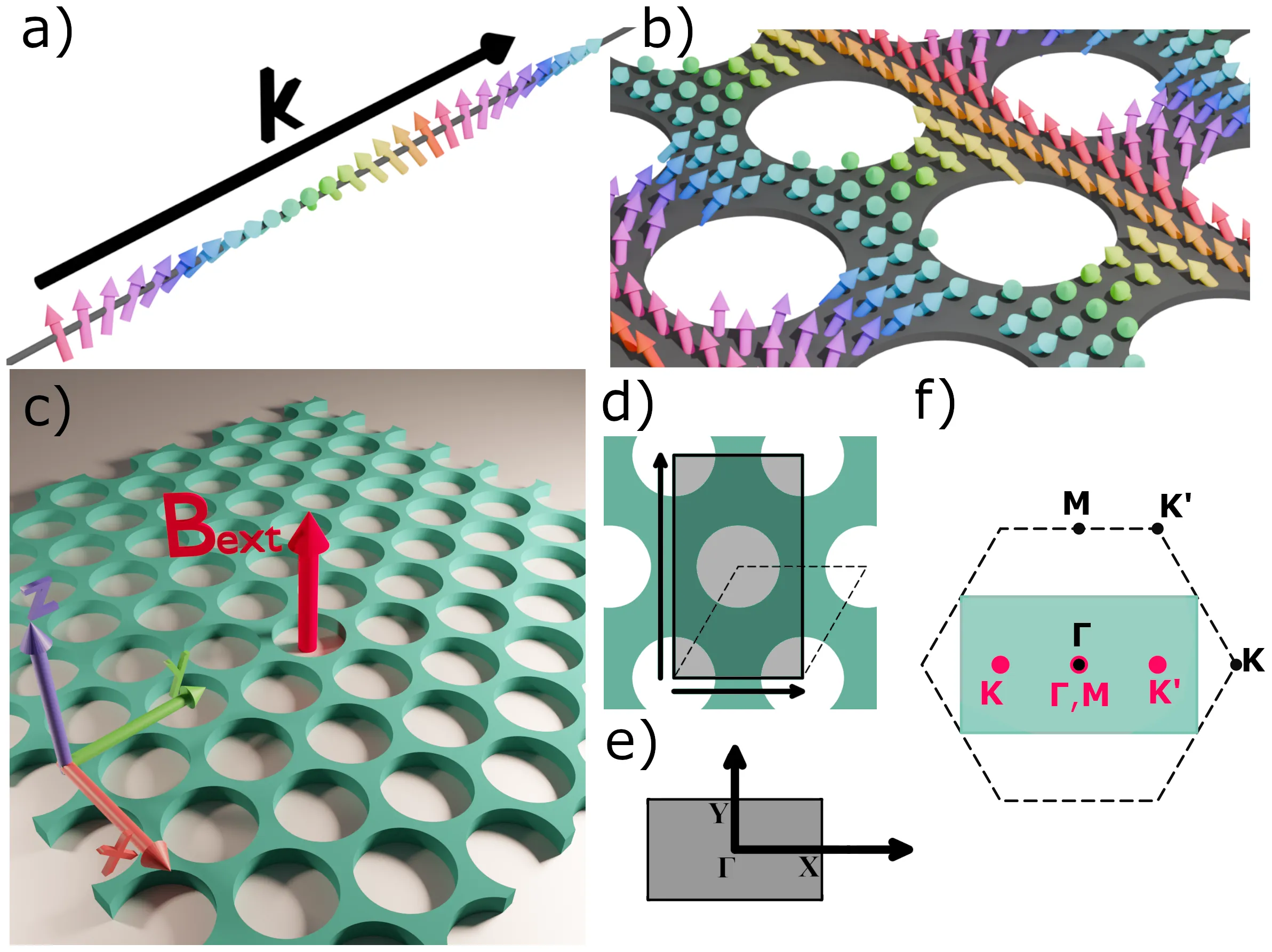 Spin waves (magnons) in 2D materials have received increasing interest due to their unique states and potential for tunability. However, many interesting features of these systems, including Dirac points and topological states, occur at high frequencies, where experimental probes are limited. Here, we study a crystal formed by patterning a hexagonal array of holes in a perpendicularly magnetized thin film. Through simulation, we find that the magnonic band structure imitates that of graphene, but additionally has some kagome-like character and includes a few flat bands. Surprisingly, its nature can be understood using a 9-band tight-binding Hamiltonian. This clear analogy to 2D materials enables band-gap engineering in 2D, topological magnons along 1D phase boundaries, and spectrally isolated modes at 0D point defects. Interestingly, the 1D phase boundaries allow access to the valley degree of freedom through a magnonic analog of the quantum valley-Hall insulator. These approaches can be extended to other magnonic systems, but are potentially more general due to the simplicity of the model, which resembles existing results from electron, phonon, photon, and cold atom systems. This finding brings the physics of spin waves in 2D materials to more experimentally accessible scales, augments it, and outlines a few principles for controlling magnonic states.