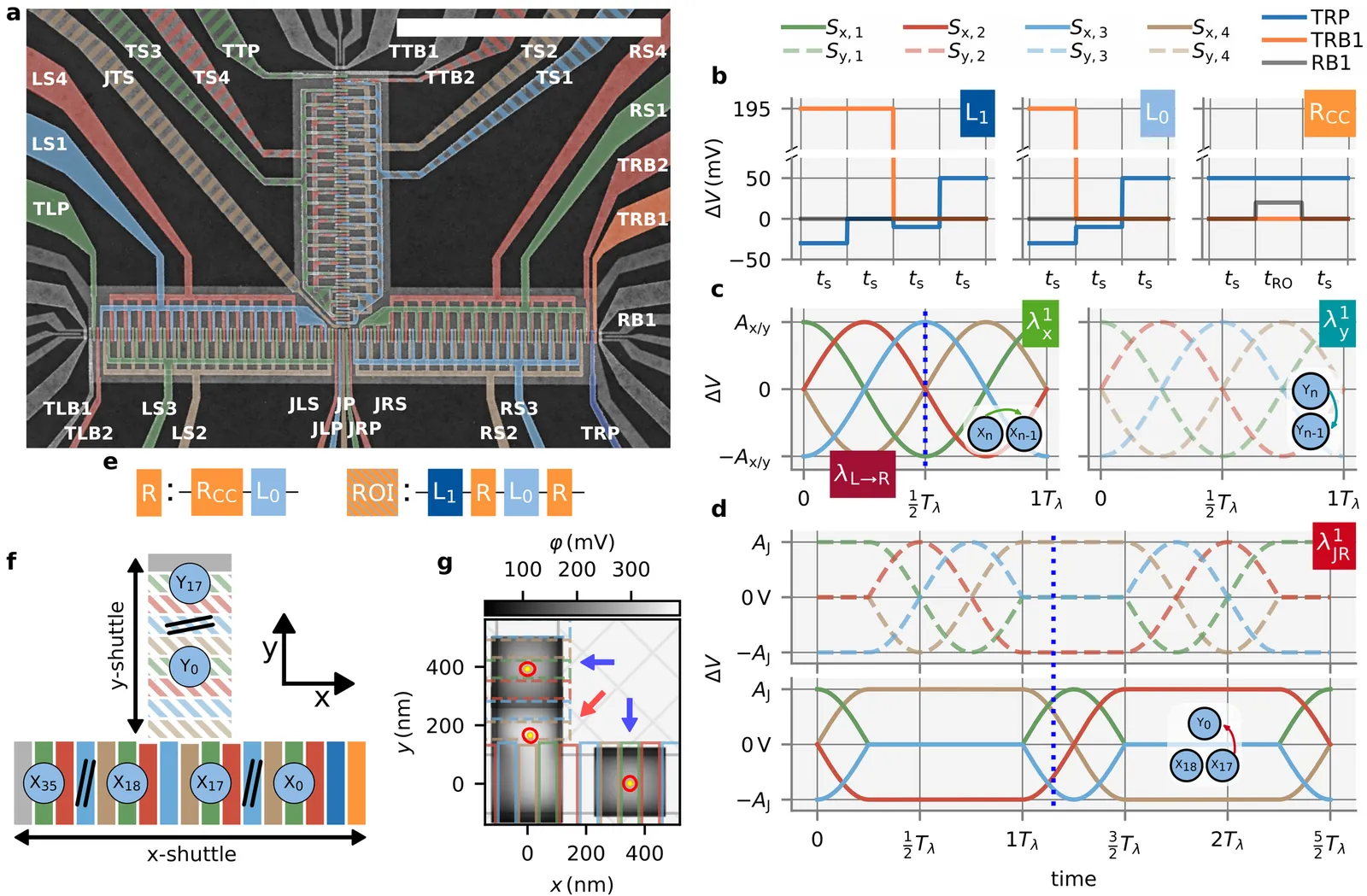 Conveyor-mode shuttling in gated Si/SiGe devices enables adiabatic transfer of single electrons, electron patterns and spin qubits confined in quantum dots across several microns with a scalable number of signal lines. To realize their full potential, linear shuttle lanes must connect into a two-dimensional grid with controllable routing. We introduce a T-junction device linking two independently driven shuttle lanes. Electron routing across the junction requires no extra control lines beyond the four channels per conveyor belt. We measure an inter-lane charge transfer fidelity of $F = 100.0000000^{+0}_{-9\times 10^{-7}}\,\%$ at an instantaneous electron velocity of $270\,\mathrm{mm}\,\mathrm{s}^{-1}$. The filling of 54 quantum dots is controlled by simple atomic pulses, allowing us to swap electron patterns, laying the groundwork for a native spin-qubit SWAP gate. This T-junction establishes a path towards scalable, two-dimensional quantum computing architectures with flexible spin qubit routing for quantum error correction.