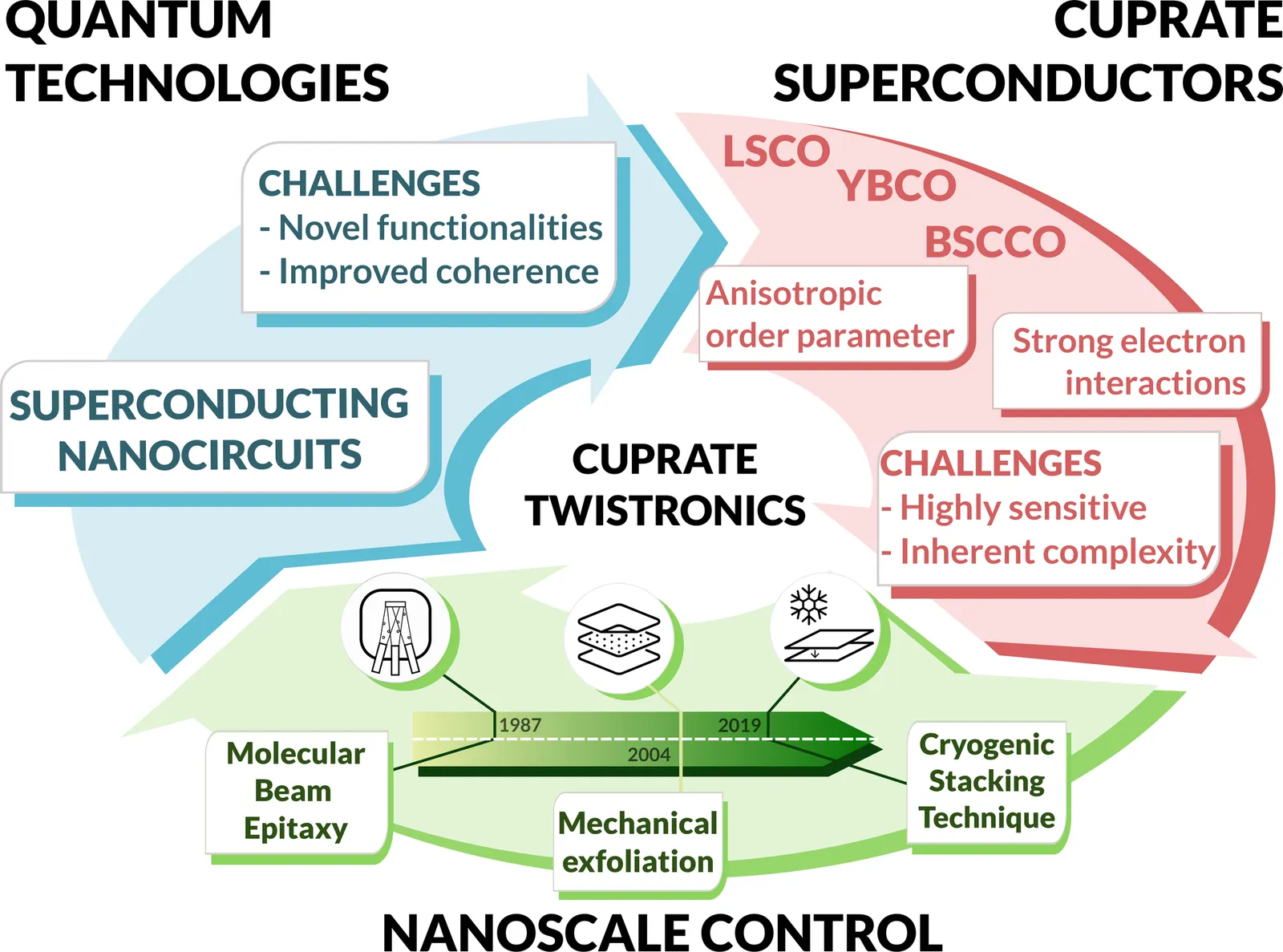 Recent advances in the manipulation of complex oxide layers, particularly the fabrication of atomically thin cuprate superconducting films via molecular beam epitaxy, have revealed new ways in which nanoscale engineering can govern superconductivity and its interwoven electronic orders. In parallel, the creation of twisted cuprate heterostructures through cryogenic stacking techniques marks a pivotal step forward, exploiting cuprate superconductors to deepen our understanding of exotic quantum states and propel next-generation quantum technologies. This review explores over three decades of research in the emerging field of cuprate twistronics, examining both experimental breakthroughs and theoretical progress. It also highlights the methodologies poised to surmount the outstanding challenges in leveraging these complex quantum materials, underscoring their potential to expand the frontiers of quantum science and technology.