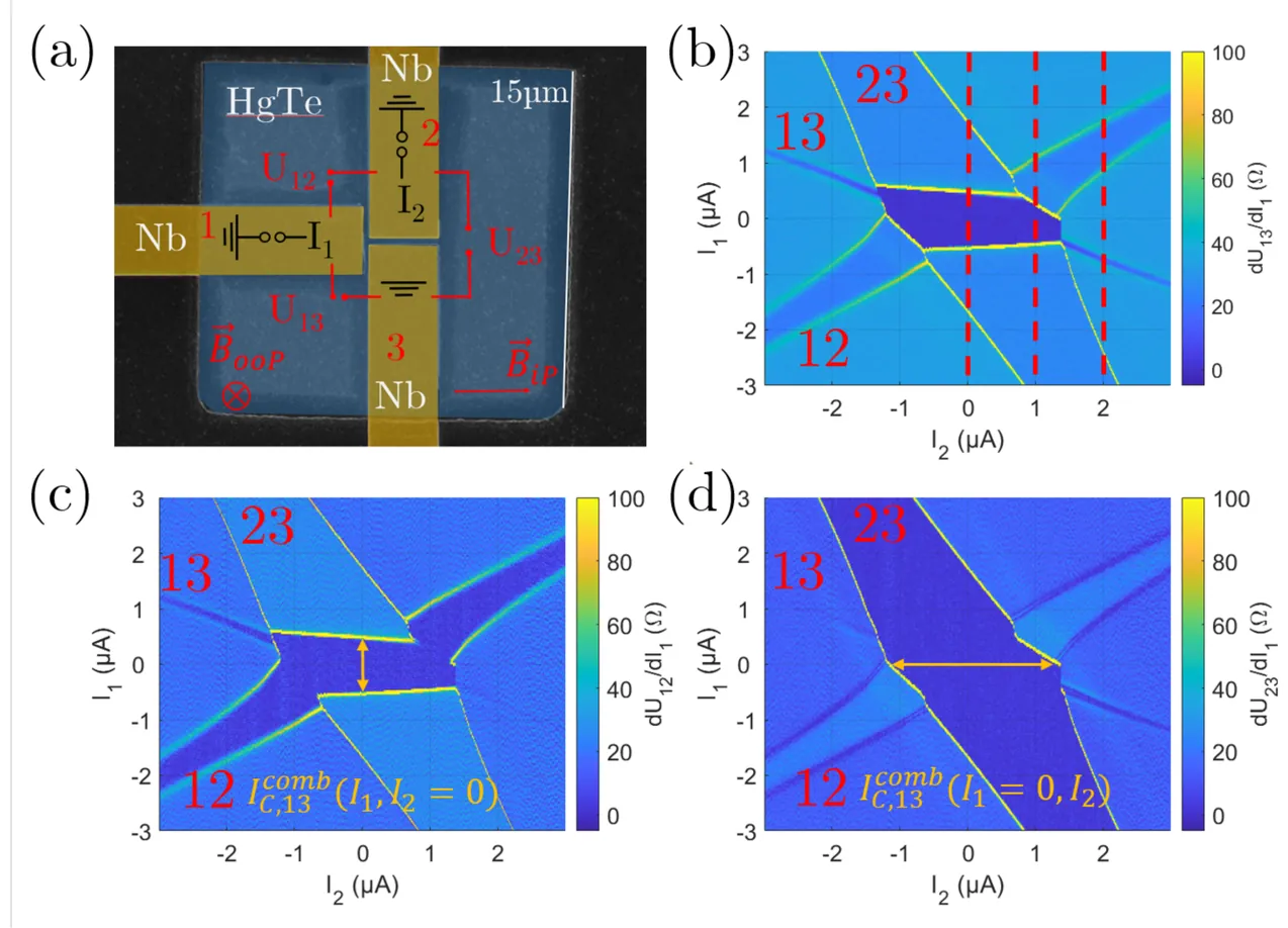We investigate HgTe/Nb-based three-terminal Josephson junctions in T-shaped and X-shaped geometries and their critical current contours (CCCs). By decomposing the CCCs into the contributions from individual junctions, we uncover how bias current and magnetic field jointly determine the collective Josephson behavior. A perpendicular magnetic field induces a tunable crossover between SQUID-like and Fraunhofer-like interference patterns, controlled by the applied bias. Moreover, magnetic flux produces pronounced deformations of the CCC, enabling symmetry control in the $(I_1,I_2)$ plane. Remarkably, we identify a regime of strongly enhanced Josephson diode efficiency, reaching values up to $η\approx 0.8$ at low bias and magnetic field. The experimental results are quantitatively reproduced by resistively shunted junction (RSJ) simulations, which capture the coupled dynamics of current and flux in these multi-terminal superconducting systems.