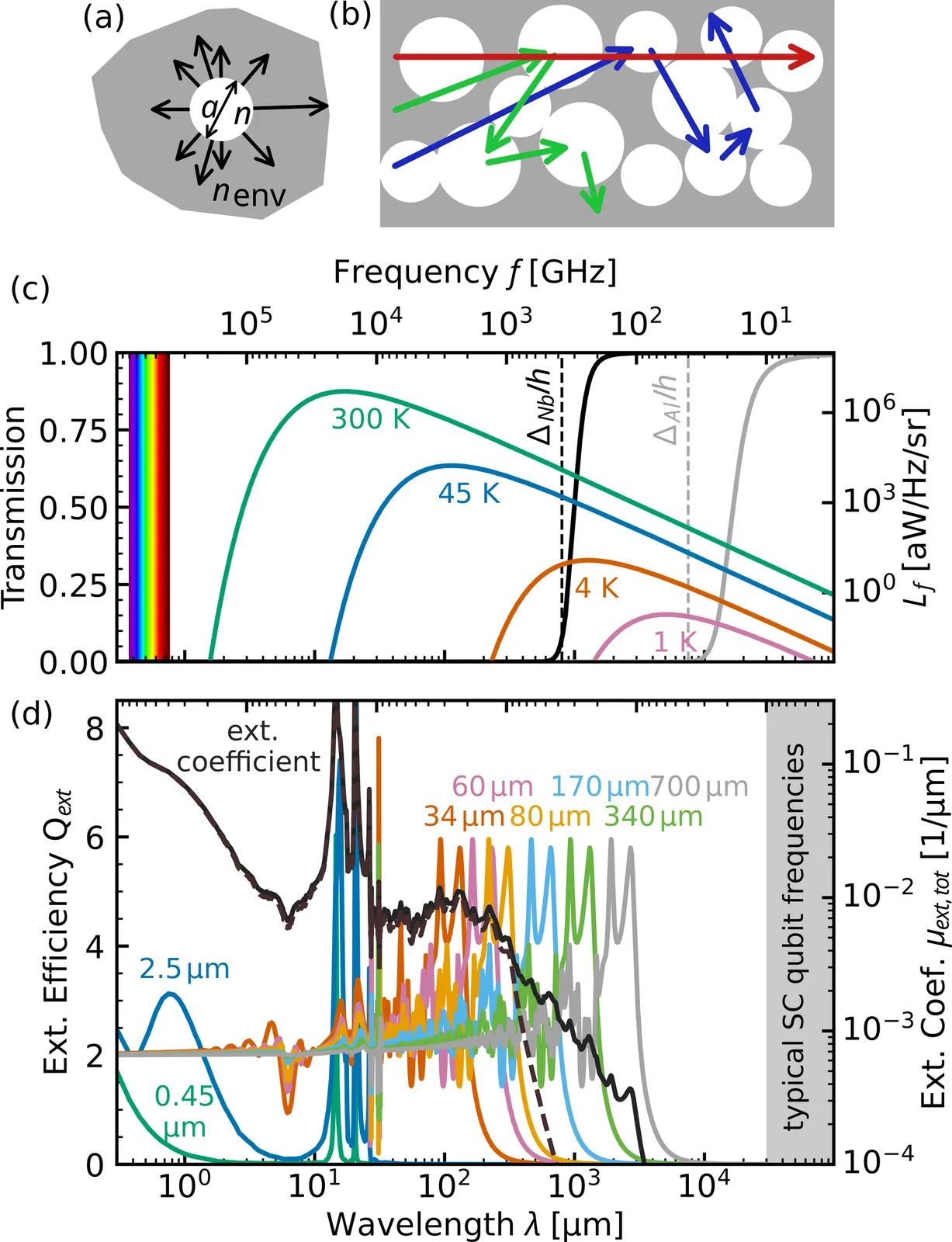 The fragile quantum states of low-temperature quantum applications require protection from infrared radiation caused by higher-temperature stages or other sources. We propose a material system that can efficiently block radiation up to the optical range while transmitting photons at low gigahertz frequencies. It is based on the effect that incident photons are strongly scattered when their wavelength is comparable to the size of particles embedded in a weakly absorbing medium (Mie-scattering). The goal of this work is to tailor the absorption and transmission spectrum of an non-magnetic epoxy resin containing sapphire spheres by simulating its dependence on the size distribution. Additionally, we fabricate several material compositions, characterize them, as well as other materials, at optical, infrared, and gigahertz frequencies. In the infrared region (stop band) the attenuation of the Mie-scattering optimized material is high and comparable to that of other commonly used filter materials. At gigahertz frequencies (pass-band), the prototype filter exhibits a high transmission at millikelvin temperatures, with an insertion loss of less than $0.4\,$dB below $10\,$GHz.