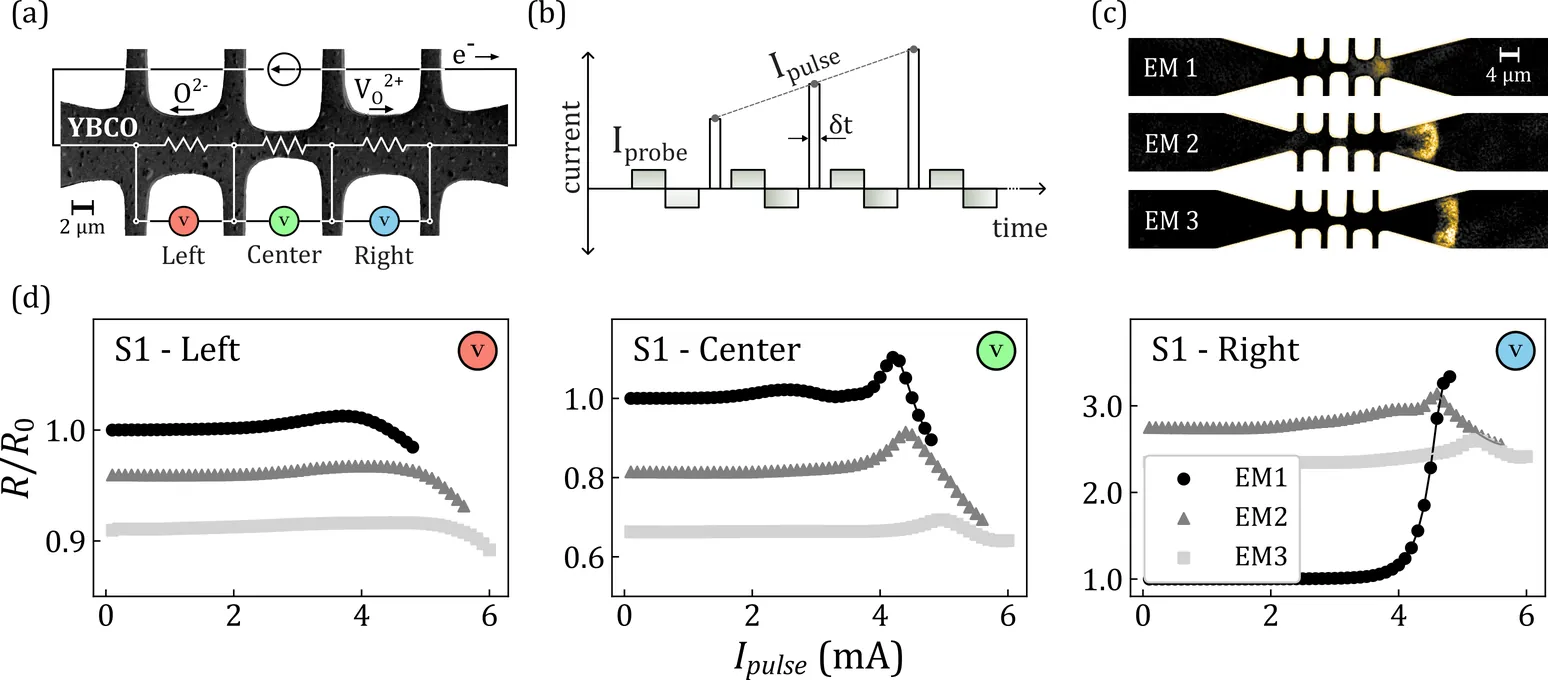 Control of oxygen vacancies by electrical currents in complex oxides such as YBa$_2$Cu$_3$O$_{7-δ}$ (YBCO) has attracted considerable interest due to the relative simplicity of its implementation and its potential for both fundamental studies and the tuning of superconducting device properties. However, the structural evolution and depth-dependent effects associated with current-based techniques remain largely unexplored, particularly with respect to the connection between optical signatures and the spatial distribution of oxygen vacancies. Here, we combine nanoprobe X-ray Diffraction (NanoXRD), Cu K-edge X-ray Absorption Near-Edge Structure (XANES), X-ray Photoelectron Spectroscopy (XPS), electrical transport, and optical measurements to reveal modifications induced in YBCO microbridges by pulsed electromigration. We observe a c-axis expansion correlated with spectroscopic features of oxygen depletion in the Cu-O chains, and we confirm that oxygen redistribution, crystallographic changes, and copper coordination evolve consistently across techniques. Notably, the spatial profile of unit-cell expansion closely follows the optical contrast observed after electromigration, demonstrating that the different signatures capture the same underlying oxygen reordering. We further show that optical microscopy cannot reliably capture bipolar electromigration involving strong resistance modifications, as surface deoxygenation appears largely irreversible. Taken together, our findings provide a significant step toward a microscopic understanding of current-assisted oxygen migration in YBCO and establish a framework for effectively exploiting vacancy control in high-temperature superconducting devices.