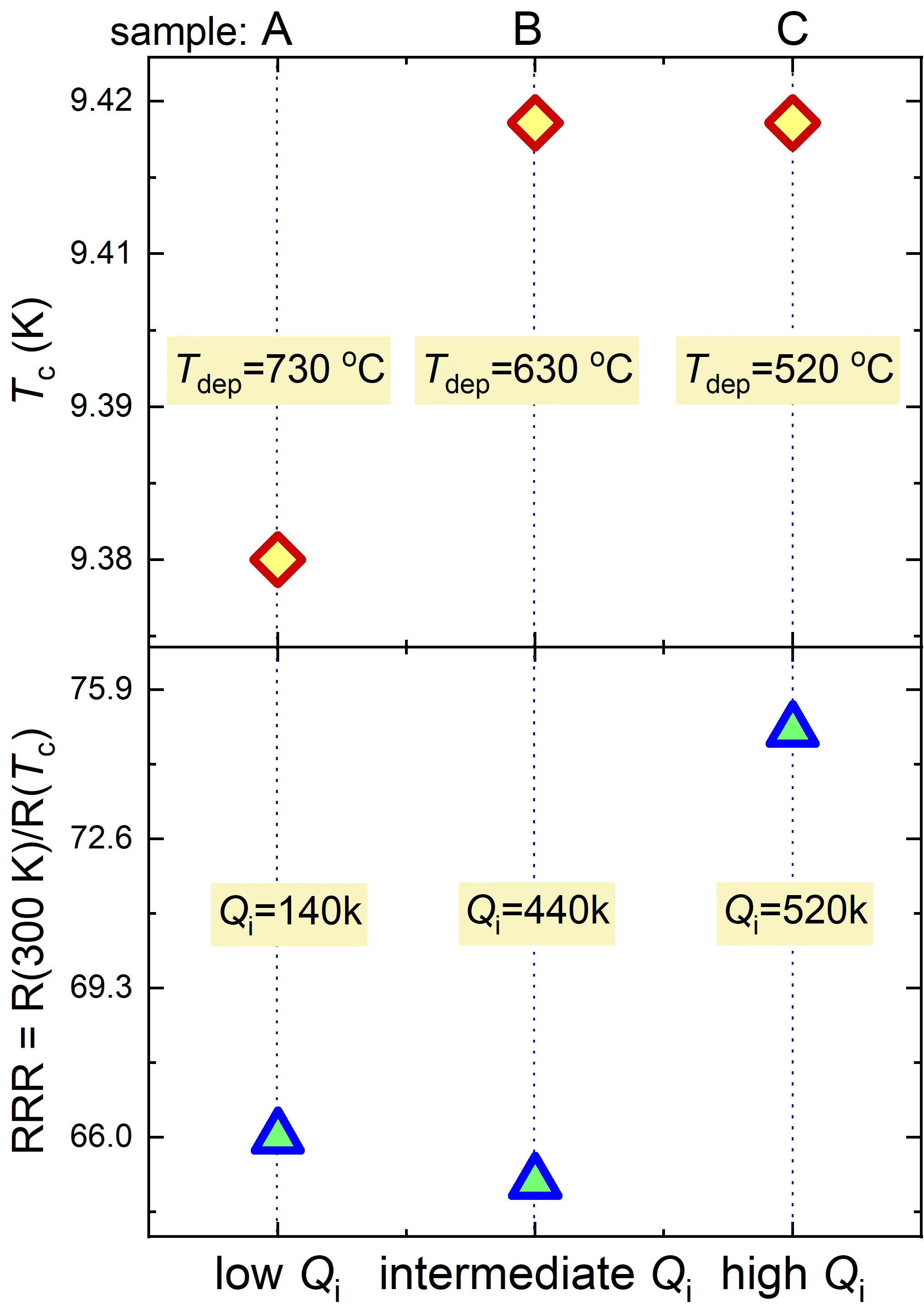Niobium is a practical material platform for superconducting microwave circuits; however, device-level performance can vary significantly depending on film growth and processing conditions. We compare three epitaxial Nb films grown on $c-$plane sapphire substrates under nominally identical conditions, except for the deposition temperature. To correlate internal quality factors, $Q_{\mathrm {i}}$, with material properties, we combine magneto-optical imaging of magnetic flux distribution with quasiparticle spectroscopy via measurements of the London penetration depth, $λ(T)$. In the low-$Q_{\mathrm i}$ film, there is a lesser ability to screen the magnetic field and an irregular temperature variation of $λ(T)$, implying the existence of localized in-gap states. High $Q_{\mathrm i}$ films show the opposite trend. We conclude that our measurements provide an efficient method for characterizing and optimizing superconducting films for quantum informatics applications.