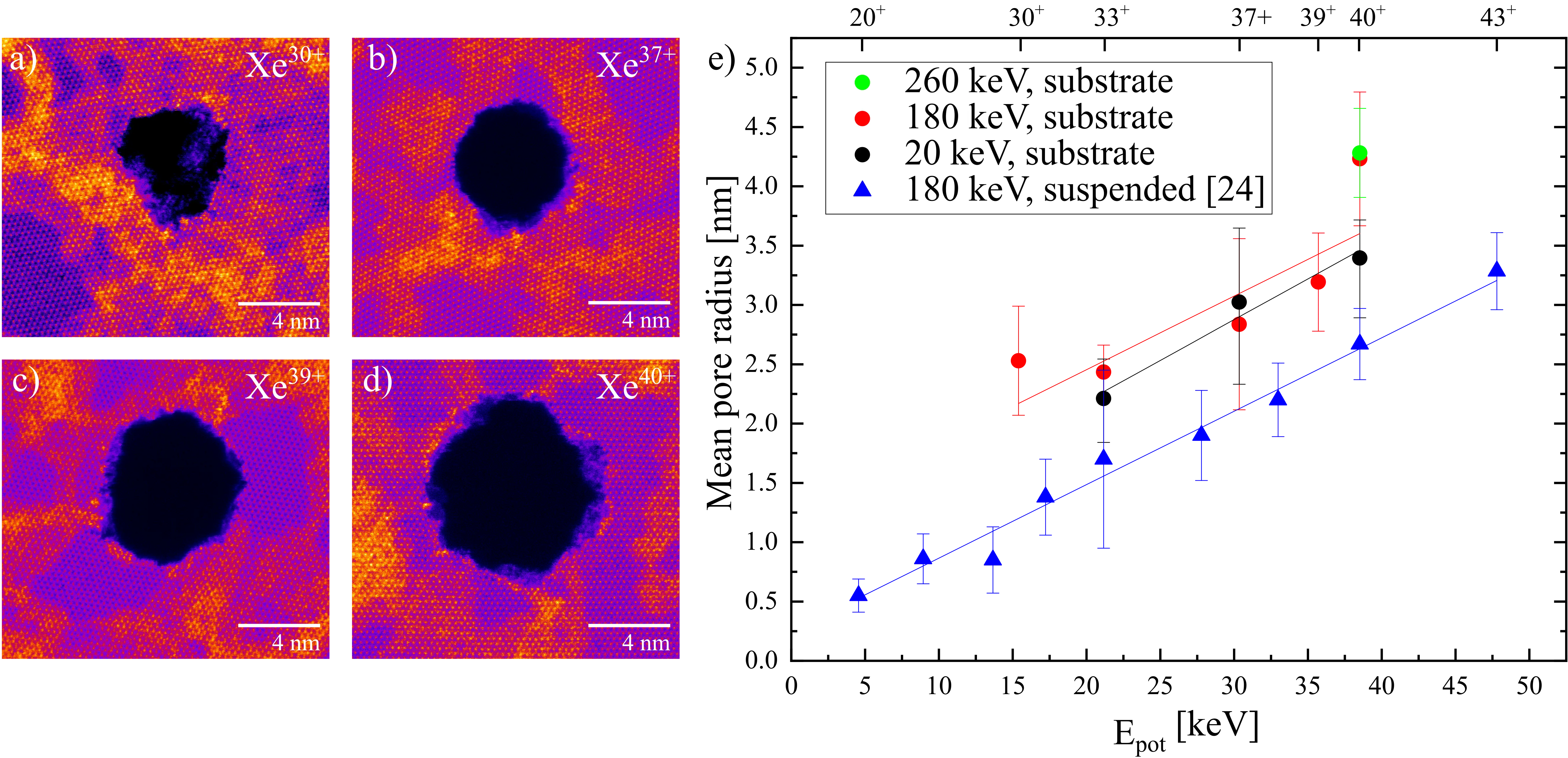 Ion irradiation is a versatile tool for nanostructuring surfaces, yet the roles of energy deposition and dissipation at the surface and in ultrathin materials remain poorly understood. In this study, we investigate nanopore formation in monolayer MoS$_2$ on different substrates under irradiation of highly charged ions (HCIs) and swift heavy ions (SHIs): two types of ions that, despite having vastly different kinetic energies, interact primarily with the electronic system of the target. Using scanning transmission electron microscopy, we quantify pore radii and pore formation efficiencies for suspended MoS$_2$, MoS$_2$ on SiO$_2$, bilayer MoS$_2$ and MoS$_2$ on gold. Both pore size and pore formation efficiency exhibit a pronounced dependence on the type of substrate. Pores are largest and most frequent in MoS$_2$ on SiO$_2$, while the gold substrate massively quenches pore formation. The results indicate that the observed pore dimensions under both HCI and SHI irradiation are consistent with a central role of substrate and interface-dependent electronic dissipation pathways.