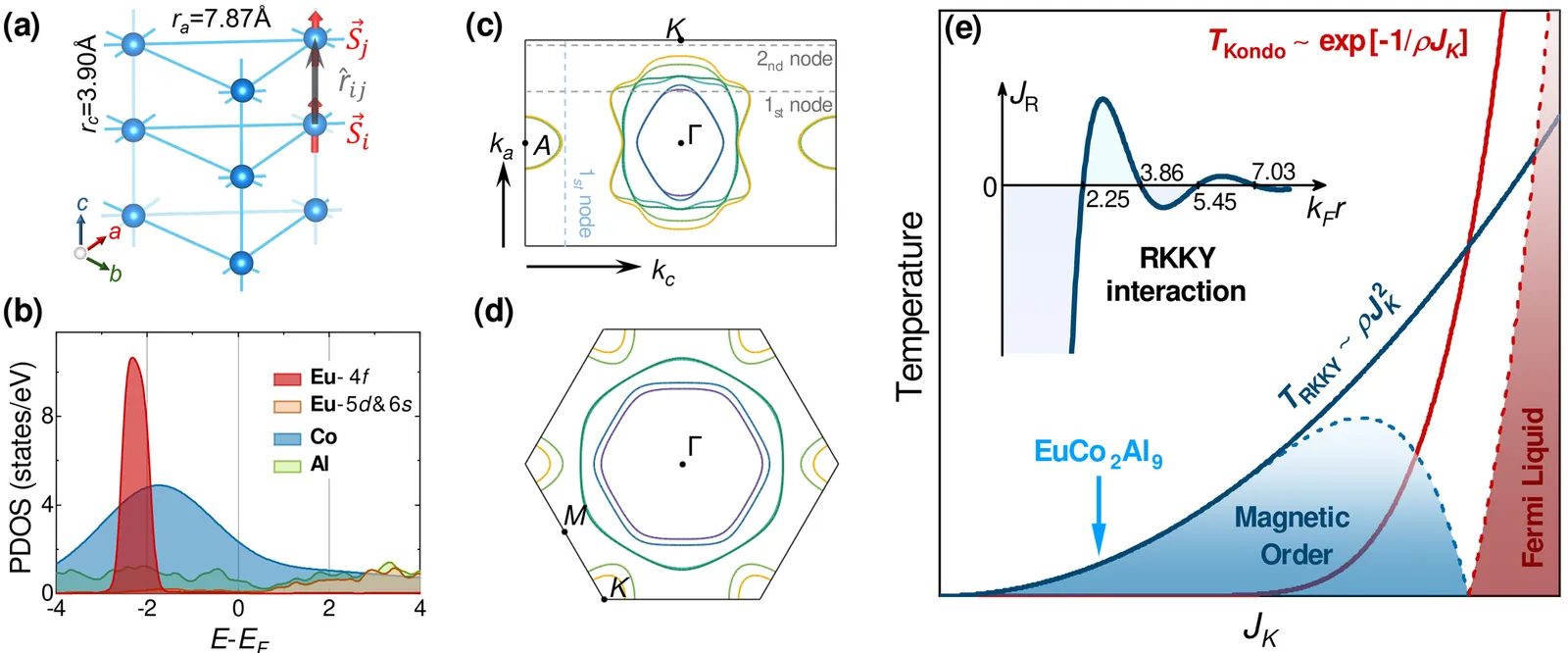 Inspired by the recent discovery of metallic spin supersolidity and its giant magnetocaloric effect in the rare-earth alloy EuCo$_2$Al$_9$ [Nature 651, 61 (2026)], we perform a combined study through electronic structure analysis, effective spin model, and Monte Carlo simulations on a stacked triangular lattice, and reveal a novel mechanism for the emergence of 3D spin supersolid in a metallic antiferromagnet. From first-principles inputs, we derive a minimal spin model on a stacked triangular lattice (STL), which arises from the interplay between Ruderman-Kittel-Kasuya-Yosida (RKKY) and dipolar interactions and accurately reproduces the experimental thermodynamics. Based on the STL model, we identify a ground state that simultaneously breaks discrete lattice translational symmetry and continuous spin-rotational symmetry -- the hallmark of a spin supersolid. Furthermore, we present the field-temperature phase diagram of the 3D STL model and discuss the various magnetic phases and associated phase transitions. Under zero field, the spin supersolid Y order establishes in two steps: an upper transition at $T_{N1}$, where an emergent U(1) symmetry appears and the system enters a fluctuating collinear regime, followed by a lower transition at $T_{N2}$ into the spin supersolid Y phase. In contrast, the supersolid V phase undergoes a single phase transition at $T_N^V$. Our results not only provide a comprehensive theoretical understanding of the metallic spin supersolid reported for EuCo$_2$Al$_9$ but also pave the way for further experimental investigations into its supersolid transitions and universality class.