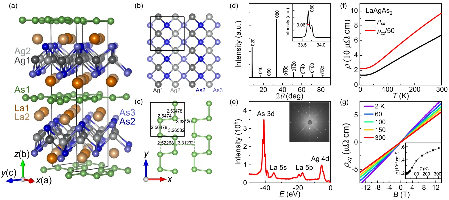 The rational design of new materials emerges as an important direction to explore new topological materials, which is based on the understanding of the correlation between crystal and electronic structures. In this paper, we perform a comprehensive study on the crystal and electronic structures in LaAgAs2 through a combination of single-crystal x-ray diffraction (XRD), quantum oscillation, and angle-resolved photoemission spectroscopy (ARPES) experimental measurements, and density functional theory (DFT) calculations. Single-crystal XRD measurements reveal that LaAgAs2 crystallizes into a HfCuSi2-derived structure with the square net distorted into cis-trans chains. Quantum oscillation measurements reveal two frequencies with small effective masses and quasi-two-dimensional (2D) characters. ARPES measurements reveal an electronic structure strikingly different from the square-net-based semimetals, such as LaAgAs2. The Fermi surface is quasi-two-dimensional (2D), with Dirac-like hole pockets at the zone center and a quasi-1D elliptical electron pocket at the zone boundary. Based on the DFT calculations, the measured electronic structure can be well understood regarding the cis-trans distortion, which transforms the two-dimensional square net-derived Dirac bands into quasi-1D trivial bands. Intriguingly, multiple topological states can be identified around the zone center, including a nontrivial Z2 topological surface state and a bulk Dirac state. Our study clarifies the impact of cis-trans distortion and identifies LaAgAs2 as a topological material with multiple topological states near the Fermi level, providing a guideline for intentionally designing new topological materials.