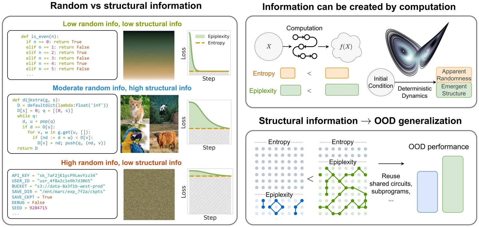 Can we learn more from data than existed in the generating process itself? Can new and useful information be constructed from merely applying deterministic transformations to existing data? Can the learnable content in data be evaluated without considering a downstream task? On these questions, Shannon information and Kolmogorov complexity come up nearly empty-handed, in part because they assume observers with unlimited computational capacity and fail to target the useful information content. In this work, we identify and exemplify three seeming paradoxes in information theory: (1) information cannot be increased by deterministic transformations; (2) information is independent of the order of data; (3) likelihood modeling is merely distribution matching. To shed light on the tension between these results and modern practice, and to quantify the value of data, we introduce epiplexity, a formalization of information capturing what computationally bounded observers can learn from data. Epiplexity captures the structural content in data while excluding time-bounded entropy, the random unpredictable content exemplified by pseudorandom number generators and chaotic dynamical systems. With these concepts, we demonstrate how information can be created with computation, how it depends on the ordering of the data, and how likelihood modeling can produce more complex programs than present in the data generating process itself. We also present practical procedures to estimate epiplexity which we show capture differences across data sources, track with downstream performance, and highlight dataset interventions that improve out-of-distribution generalization. In contrast to principles of model selection, epiplexity provides a theoretical foundation for data selection, guiding how to select, generate, or transform data for learning systems.