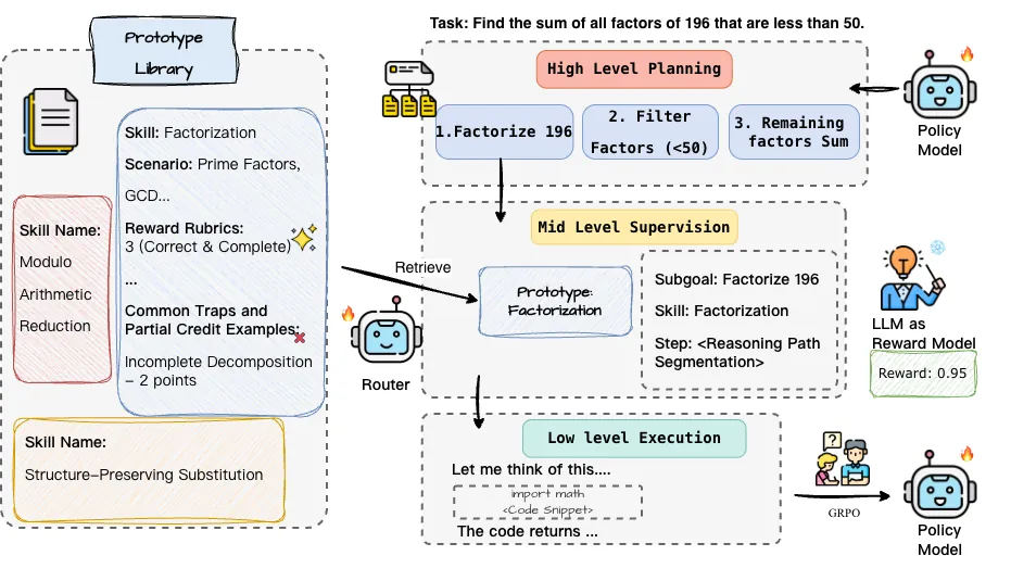 Training reliable tool-augmented agents remains a significant challenge, largely due to the difficulty of credit assignment in multi-step reasoning. While process-level reward models offer a promising direction, existing LLM-based judges often produce noisy and inconsistent signals because they lack fine-grained, task-specific rubrics to distinguish high-level planning from low-level execution. In this work, we introduce SCRIBE (Skill-Conditioned Reward with Intermediate Behavioral Evaluation), a reinforcement learning framework that intervenes at a novel mid-level abstraction. SCRIBE grounds reward modeling in a curated library of skill prototypes, transforming open-ended LLM evaluation into a constrained verification problem. By routing each subgoal to a corresponding prototype, the reward model is equipped with precise, structured rubrics that substantially reduce reward variance. Experimental results show that SCRIBE achieves state-of-the-art performance across a range of reasoning and tool-use benchmarks. In particular, it improves the AIME25 accuracy of a Qwen3-4B model from 43.3% to 63.3%, and significantly increases success rates in complex multi-turn tool interactions. Further analysis of training dynamics reveals a co-evolution across abstraction levels, where mastery of mid-level skills consistently precedes the emergence of effective high-level planning behaviors. Finally, we demonstrate that SCRIBE is additive to low-level tool optimizations, providing a scalable and complementary pathway toward more autonomous and reliable tool-using agents.