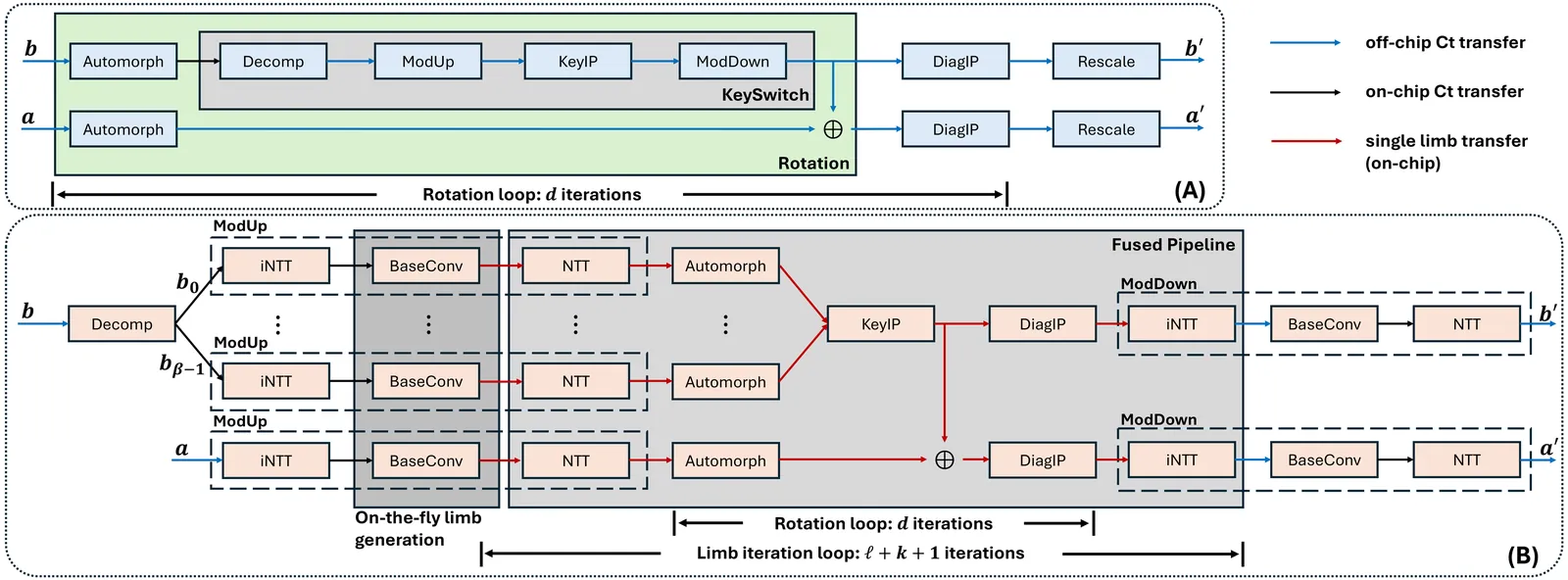 Homomorphic Encryption (HE) enables secure computation on encrypted data, addressing privacy concerns in cloud computing. However, the high computational cost of HE operations, particularly matrix multiplication (MM), remains a major barrier to its practical deployment. Accelerating homomorphic encrypted MM (HE MM) is therefore crucial for applications such as privacy-preserving machine learning. In this paper, we present a bandwidth-efficient FPGA implementation of HE MM. We first develop a cost model to evaluate the on-chip memory requirements for a given set of HE parameters and input matrix sizes. Our analysis shows that optimizing on-chip memory usage is critical for scalable and efficient HE MM. To this end, we design a novel datapath for Homomorphic Linear Transformation (HLT), the primary bottleneck in HE MM. The proposed datapath significantly reduces off-chip memory traffic and on-chip memory demand by enabling fine-grained data reuse. Leveraging this datapath, we introduce FAME, the first FPGA-based accelerator specifically tailored for HE MM. FAME supports arbitrary matrix shapes and is configurable across a wide range of HE parameter sets. We implement FAME on an Alveo U280 FPGA and evaluate its performance across diverse matrix sizes and shapes. Experimental results show that FAME achieves an average speedup of 221x over state-of-the-art CPU-based implementations, demonstrating its scalability and practicality for large-scale consecutive HE MM and real-world workloads.