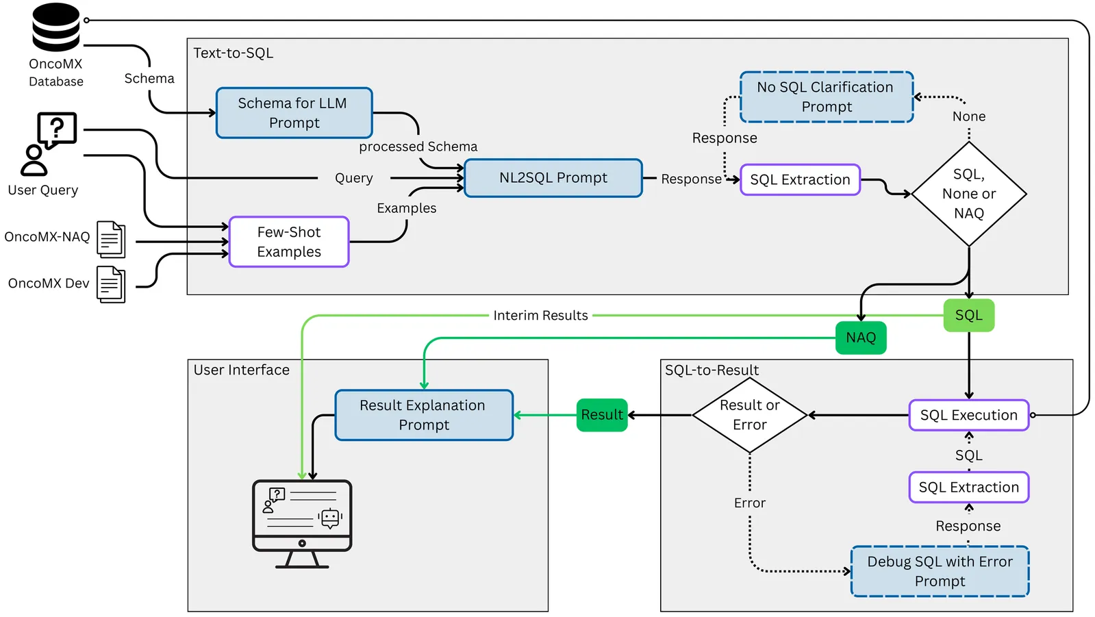 Text-to-SQL systems allow non-SQL experts to interact with relational databases using natural language. However, their tendency to generate executable SQL for ambiguous, out-of-scope, or unanswerable queries introduces a hidden risk, as outputs may be misinterpreted as correct. This risk is especially serious in biomedical contexts, where precision is critical. We therefore present Query Carefully, a pipeline that integrates LLM-based SQL generation with explicit detection and handling of unanswerable inputs. Building on the OncoMX component of ScienceBenchmark, we construct OncoMX-NAQ (No-Answer Questions), a set of 80 no-answer questions spanning 8 categories (non-SQL, out-of-schema/domain, and multiple ambiguity types). Our approach employs llama3.3:70b with schema-aware prompts, explicit No-Answer Rules (NAR), and few-shot examples drawn from both answerable and unanswerable questions. We evaluate SQL exact match, result accuracy, and unanswerable-detection accuracy. On the OncoMX dev split, few-shot prompting with answerable examples increases result accuracy, and adding unanswerable examples does not degrade performance. On OncoMX-NAQ, balanced prompting achieves the highest unanswerable-detection accuracy (0.8), with near-perfect results for structurally defined categories (non-SQL, missing columns, out-of-domain) but persistent challenges for missing-value queries (0.5) and column ambiguity (0.3). A lightweight user interface surfaces interim SQL, execution results, and abstentions, supporting transparent and reliable text-to-SQL in biomedical applications.