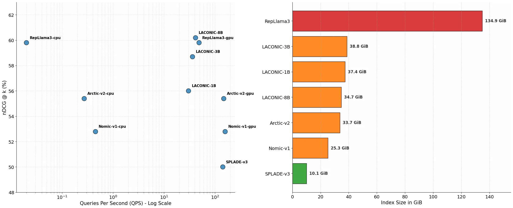 While dense retrieval models have become the standard for state-of-the-art information retrieval, their deployment is often constrained by high memory requirements and reliance on GPU accelerators for vector similarity search. Learned sparse retrieval offers a compelling alternative by enabling efficient search via inverted indices, yet it has historically received less attention than dense approaches. In this report, we introduce LACONIC, a family of learned sparse retrievers based on the Llama-3 architecture (1B, 3B, and 8B). We propose a streamlined two-phase training curriculum consisting of (1) weakly supervised pre-finetuning to adapt causal LLMs for bidirectional contextualization and (2) high-signal finetuning using curated hard negatives. Our results demonstrate that LACONIC effectively bridges the performance gap with dense models: the 8B variant achieves a state-of-the-art 60.2 nDCG on the MTEB Retrieval benchmark, ranking 15th on the leaderboard as of January 1, 2026, while utilizing 71\% less index memory than an equivalent dense model. By delivering high retrieval effectiveness on commodity CPU hardware with a fraction of the compute budget required by competing models, LACONIC provides a scalable and efficient solution for real-world search applications.