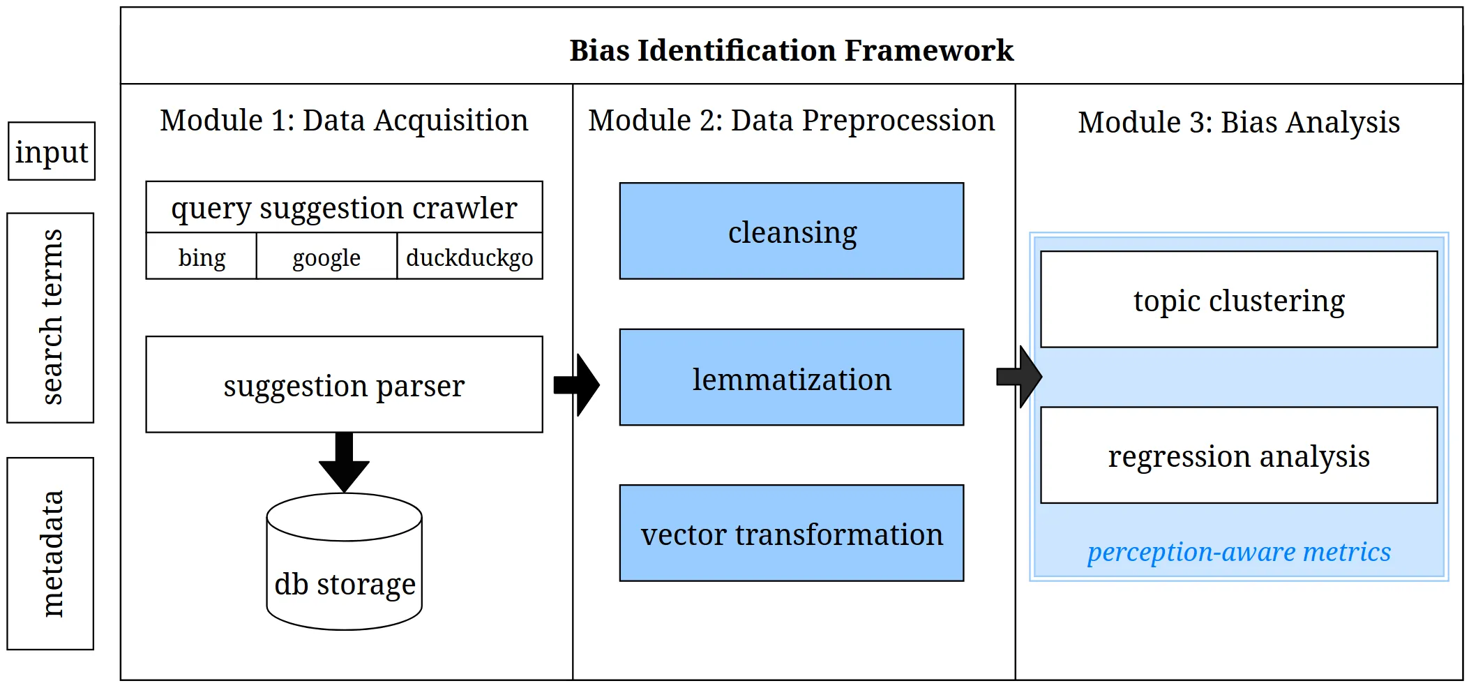 Bias in web search has been in the spotlight of bias detection research for quite a while. At the same time, little attention has been paid to query suggestions in this regard. Awareness of the problem of biased query suggestions has been raised. Likewise, there is a rising need for automatic bias detection approaches. This paper adds on the bias detection pipeline for bias detection in query suggestions of person-related search developed by Bonart et al. \cite{Bonart_2019a}. The sparseness and lack of contextual metadata of query suggestions make them a difficult subject for bias detection. Furthermore, query suggestions are perceived very briefly and subliminally. To overcome these issues, perception-aware metrics are introduced. Consequently, the enhanced pipeline is able to better detect systematic topical bias in search engine query suggestions for person-related searches. The results of an analysis performed with the developed pipeline confirm this assumption. Due to the perception-aware bias detection metrics, findings produced by the pipeline can be assumed to reflect bias that users would discern.