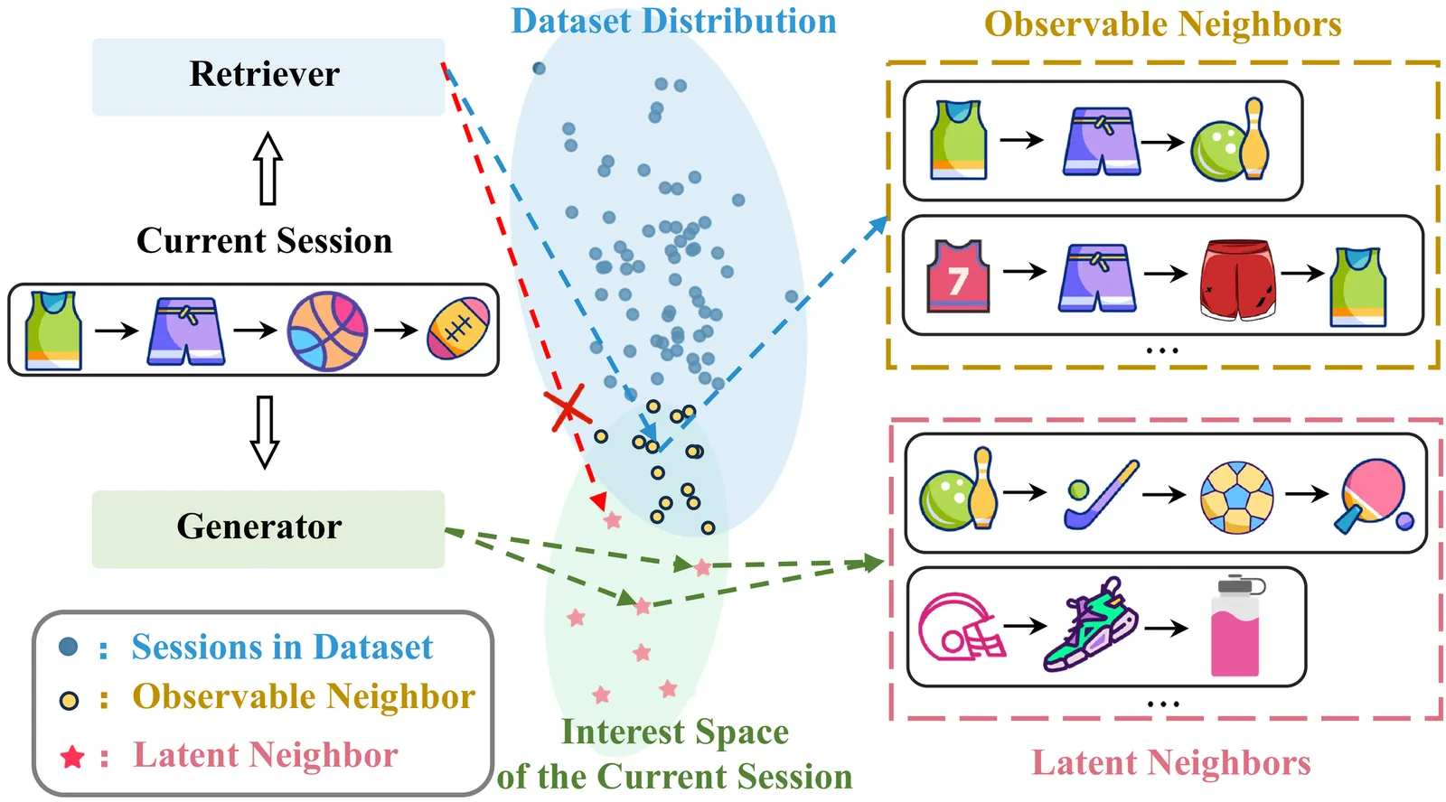 Session-based recommendation aims to predict the next item that anonymous users may be interested in, based on their current session interactions. Recent studies have demonstrated that retrieving neighbor sessions to augment the current session can effectively alleviate the data sparsity issue and improve recommendation performance. However, existing methods typically rely on explicitly observed session data, neglecting latent neighbors - not directly observed but potentially relevant within the interest space - thereby failing to fully exploit the potential of neighbor sessions in recommendation. To address the above limitation, we propose a novel model of diffusion-based latent neighbor generation for session-based recommendation, named DiffSBR. Specifically, DiffSBR leverages two diffusion modules, including retrieval-augmented diffusion and self-augmented diffusion, to generate high-quality latent neighbors. In the retrieval-augmented diffusion module, we leverage retrieved neighbors as guiding signals to constrain and reconstruct the distribution of latent neighbors. Meanwhile, we adopt a training strategy that enables the retriever to learn from the feedback provided by the generator. In the self-augmented diffusion module, we explicitly guide the generation of latent neighbors by injecting the current session's multi-modal signals through contrastive learning. After obtaining the generated latent neighbors, we utilize them to enhance session representations for improving session-based recommendation. Extensive experiments on four public datasets show that DiffSBR generates effective latent neighbors and improves recommendation performance against state-of-the-art baselines.