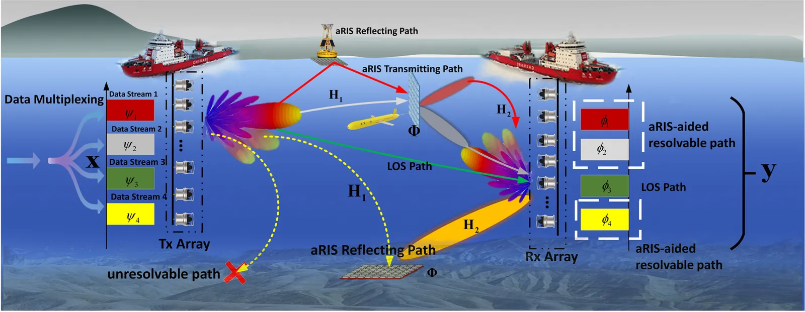 Underwater acoustic (UWA) communications are essential for high-speed marine data transmission but remain severely constrained by limited bandwidth, significant propagation loss, and sparse multipath structures. Conventional underwater acoustic multiple-input multiple-output (MIMO) systems primarily utilize spatial diversity but suffer from limited array resolution, causing angular ambiguity and insufficient spatial degrees of freedom (DoFs). This paper addresses these limitations through acoustic Reconfigurable Intelligent Surfaces (aRIS) to actively generate orthogonally distinguishable virtual paths, significantly enhancing spatial DoFs and channel capacity. An ocean-specific DoF-channel coupling model is established, explicitly deriving conditions for spatial rank enhancement. Subsequently, the optimal geometric locus, termed the Light-Point, is analytically identified, where deploying a single aRIS maximizes DoFs by introducing two and three additional resolvable paths in deep-sea and shallow-sea environments, respectively. Furthermore, an active simultaneous transmitting and reflecting (ASTAR) aRIS architecture with independent beam control and adaptive beam-tracking mechanism integrating unmanned underwater vehicles (UUVs) and acoustic intensity gradient sensing is proposed. Extensive simulations validate the proposed joint aRIS deployment and beamforming framework, demonstrating substantial UWA channel capacity improvements-up to 265% and 170% in shallow-sea and deep-sea scenarios, respectively.