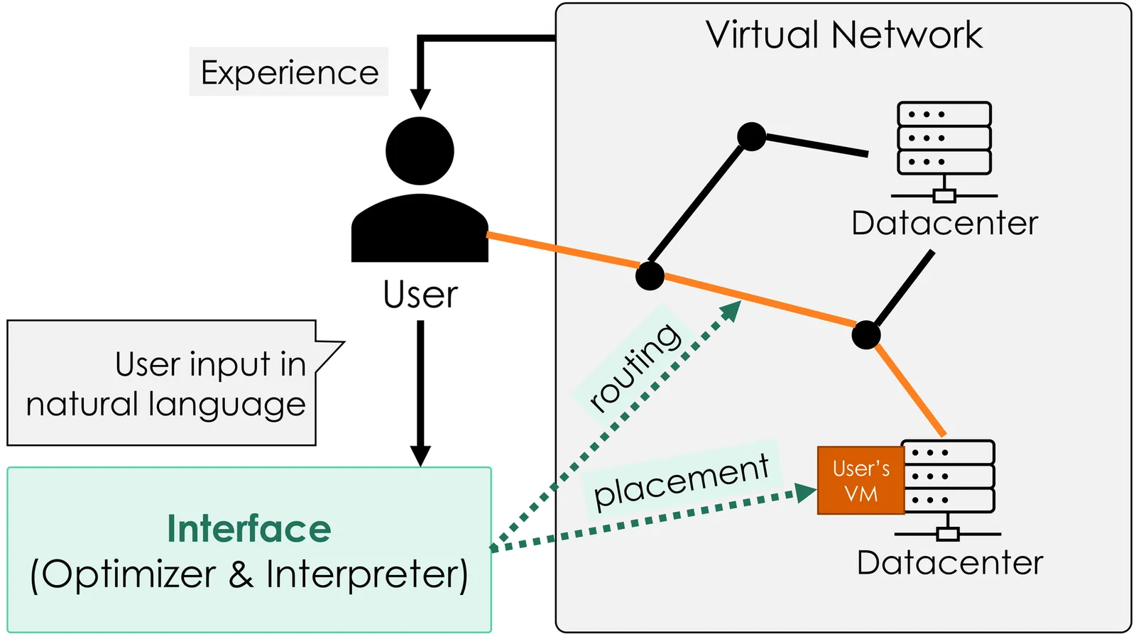 This paper proposes a chat-driven network management framework that integrates natural language processing (NLP) with optimization-based virtual network allocation, enabling intuitive and reliable reconfiguration of virtual network services. Conventional intent-based networking (IBN) methods depend on statistical language models to interpret user intent but cannot guarantee the feasibility of generated configurations. To overcome this, we develop a two-stage framework consisting of an Interpreter, which extracts intent from natural language prompts using NLP, and an Optimizer, which computes feasible virtual machine (VM) placement and routing via an integer linear programming. In particular, the Interpreter translates user chats into update directions, i.e., whether to increase, decrease, or maintain parameters such as CPU demand and latency bounds, thereby enabling iterative refinement of the network configuration. In this paper, two intent extractors, which are a Sentence-BERT model with support vector machine (SVM) classifiers and a large language model (LLM), are introduced. Experiments in single-user and multi-user settings show that the framework dynamically updates VM placement and routing while preserving feasibility. The LLM-based extractor achieves higher accuracy with fewer labeled samples, whereas the Sentence-BERT with SVM classifiers provides significantly lower latency suitable for real-time operation. These results underscore the effectiveness of combining NLP-driven intent extraction with optimization-based allocation for safe, interpretable, and user-friendly virtual network management.