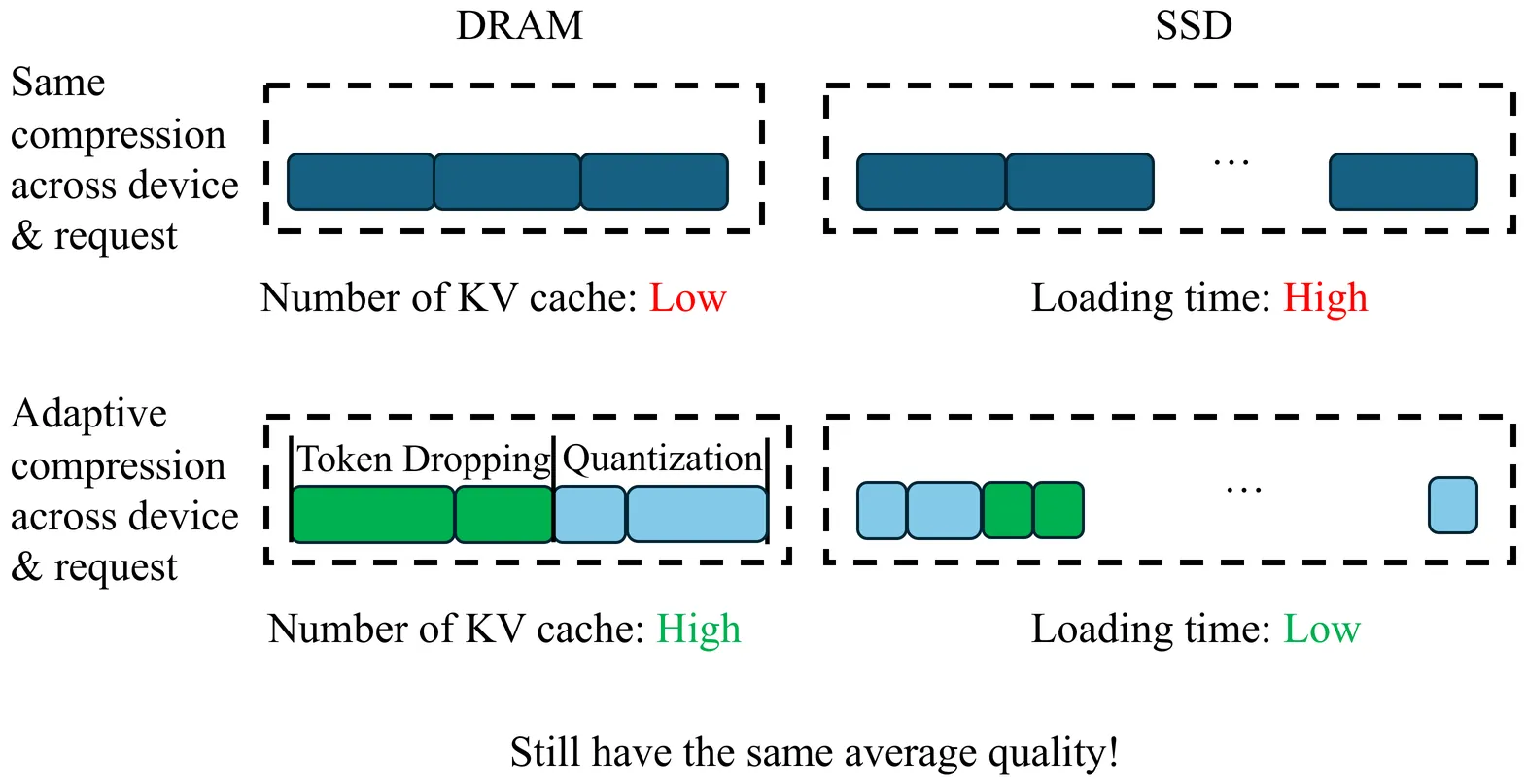 Reusing KV cache is essential for high efficiency of Large Language Model (LLM) inference systems. With more LLM users, the KV cache footprint can easily exceed GPU memory capacity, so prior work has proposed to either evict KV cache to lower-tier storage devices, or compress KV cache so that more KV cache can be fit in the fast memory. However, prior work misses an important opportunity: jointly optimizing the eviction and compression decisions across all KV caches to minimize average generation latency without hurting quality. We propose EVICPRESS, a KV-cache management system that applies lossy compression and adaptive eviction to KV cache across multiple storage tiers. Specifically, for each KV cache of a context, EVICPRESS considers the effect of compression and eviction of the KV cache on the average generation quality and delay across all contexts as a whole. To achieve this, EVICPRESS proposes a unified utility function that quantifies the effect of quality and delay of the lossy compression or eviction. To this end, EVICPRESS's profiling module periodically updates the utility function scores on all possible eviction-compression configurations for all contexts and places KV caches using a fast heuristic to rearrange KV caches on all storage tiers, with the goal of maximizing the utility function scores on each storage tier. Compared to the baselines that evict KV cache or compress KV cache, EVICPRESS achieves higher KV-cache hit rates on fast devices, i.e., lower delay, while preserving high generation quality by applying conservative compression to contexts that are sensitive to compression errors. Evaluation on 12 datasets and 5 models demonstrates that EVICPRESS achieves up to 2.19x faster time-to-first-token (TTFT) at equivalent generation quality.