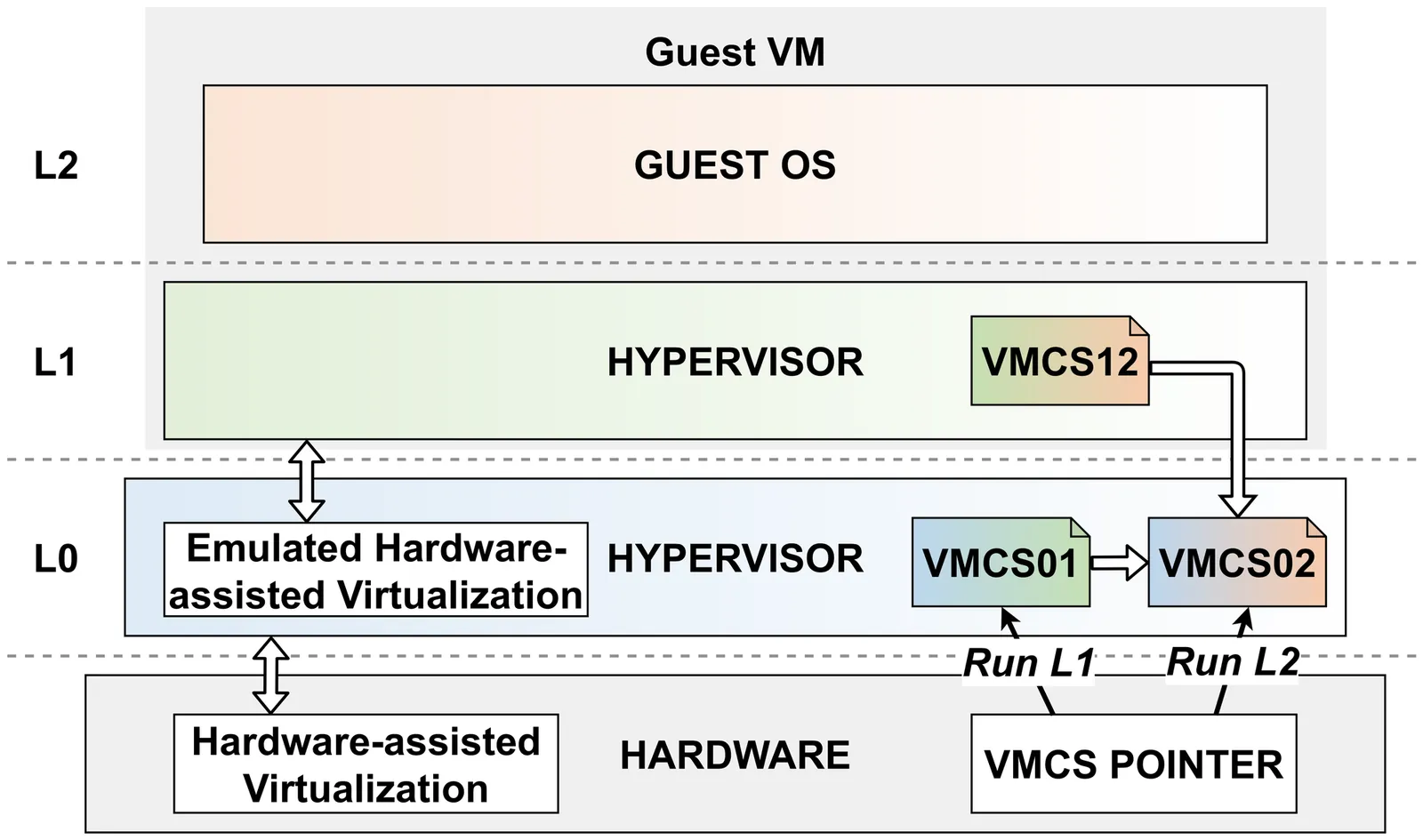 Nested virtualization is now widely supported by major cloud vendors, allowing users to leverage virtualization-based technologies in the cloud. However, supporting nested virtualization significantly increases host hypervisor complexity and introduces a new attack surface in cloud platforms. While many prior studies have explored hypervisor fuzzing, none has explicitly addressed nested virtualization due to the challenge of generating effective virtual machine (VM) instances with a vast state space as fuzzing inputs. We present NecoFuzz, the first fuzzing framework that systematically targets nested virtualization-specific logic in hypervisors. NecoFuzz synthesizes executable fuzz-harness VMs with internal states near the boundary between valid and invalid, guided by an approximate model of hardware-assisted virtualization specifications. Since vulnerabilities in nested virtualization often stem from incorrect handling of unexpected VM states, this specification-guided, boundary-oriented generation significantly improves coverage of security-critical code across different hypervisors. We implemented NecoFuzz on Intel VT-x and AMD-V by extending AFL++ to support fuzz-harness VMs. NecoFuzz achieved 84.7% and 74.2% code coverage for nested virtualization-specific code on Intel VT-x and AMD-V, respectively, and uncovered six previously unknown vulnerabilities across three hypervisors, including two assigned CVEs.