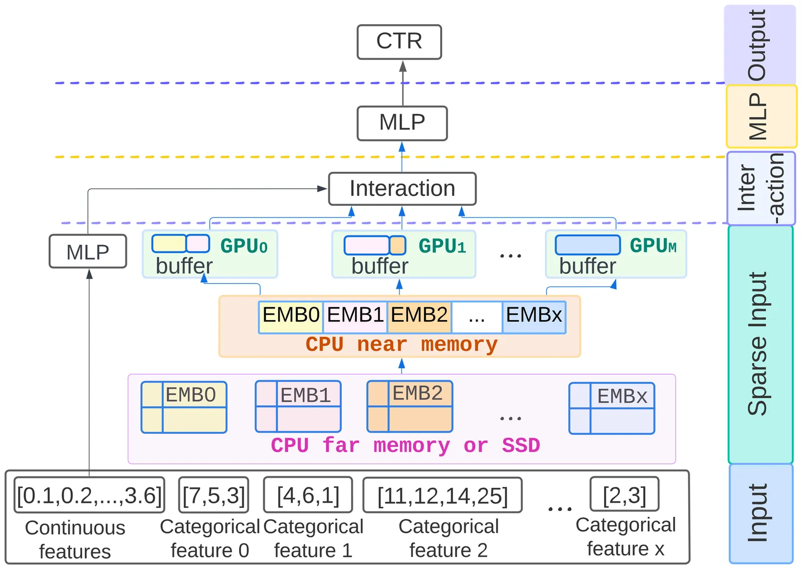 Deep learning recommendation models (DLRMs) are widely used in industry, and their memory capacity requirements reach the terabyte scale. Tiered memory architectures provide a cost-effective solution but introduce challenges in embedding-vector placement due to complex embedding-access patterns. We propose RecMG, a machine learning (ML)-guided system for vector caching and prefetching on tiered memory. RecMG accurately predicts accesses to embedding vectors with long reuse distances or few reuses. The design of RecMG focuses on making ML feasible in the context of DLRM inference by addressing unique challenges in data labeling and navigating the search space for embedding-vector placement. By employing separate ML models for caching and prefetching, plus a novel differentiable loss function, RecMG narrows the prefetching search space and minimizes on-demand fetches. Compared to state-of-the-art temporal, spatial, and ML-based prefetchers, RecMG reduces on-demand fetches by 2.2x, 2.8x, and 1.5x, respectively. In industrial-scale DLRM inference scenarios, RecMG effectively reduces end-to-end DLRM inference time by up to 43%.