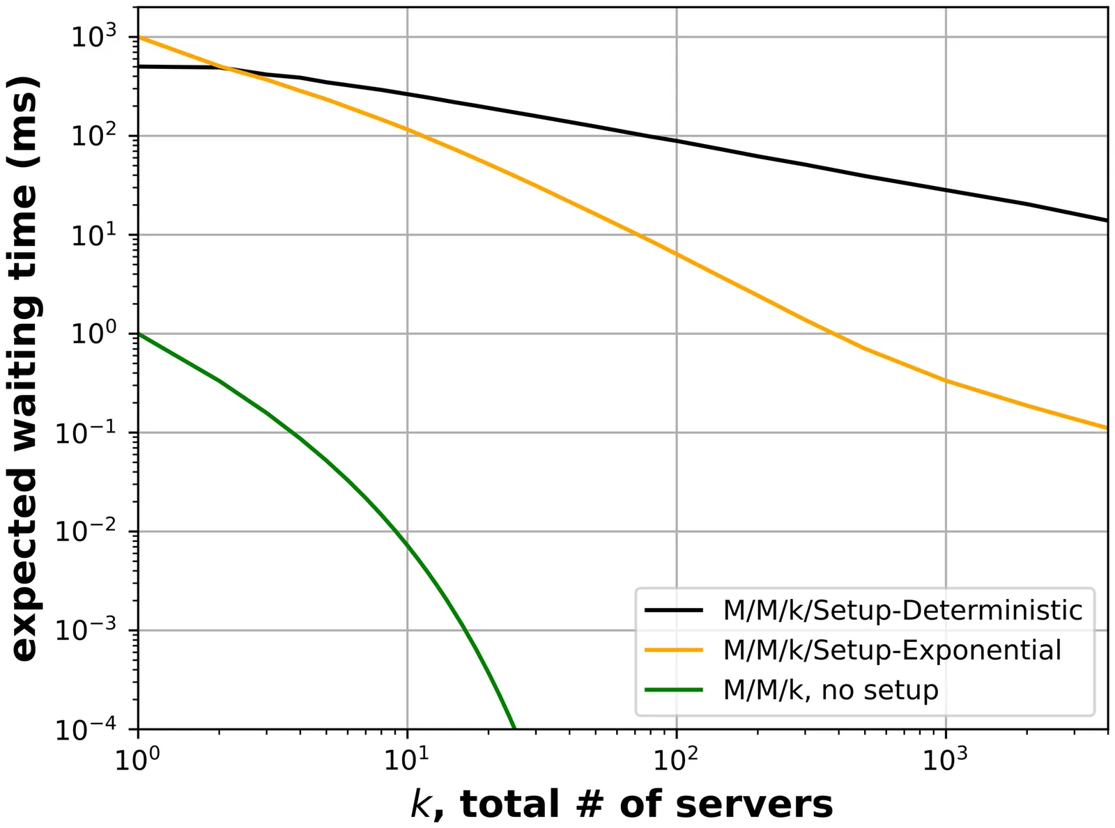 In many systems, servers do not turn on instantly; instead, a setup time must pass before a server can begin work. These "setup times" can wreak havoc on a system's queueing; this is especially true in modern systems, where servers are regularly turned on and off as a way to reduce operating costs (energy, labor, CO2, etc.). To design modern systems which are both efficient and performant, we need to understand how setup times affect queues. Unfortunately, despite successes in understanding setup in a single-server system, setup in a multiserver system remains poorly understood. To circumvent the main difficulty in analyzing multiserver setup, all existing results assume that setup times are memoryless, i.e. distributed Exponentially. However, in most practical settings, setup times are close to Deterministic, and the widely used Exponential-setup assumption leads to unrealistic model behavior and a dramatic underestimation of the true harm caused by setup times. This paper provides a comprehensive characterization of the average waiting time in a multiserver system with Deterministic setup times, the M/M/k/Setup-Deterministic. In particular, we derive upper and lower bounds on the average waiting time in this system, and show these bounds are within a multiplicative constant of each other. These bounds are the first closed-form characterization of waiting time in any finite-server system with setup times. Further, we demonstrate how to combine our upper and lower bounds to derive a simple and accurate approximation for the average waiting time. These results are all made possible via a new technique for analyzing random time integrals that we named the Method of Intervening Stopping Times, or MIST.